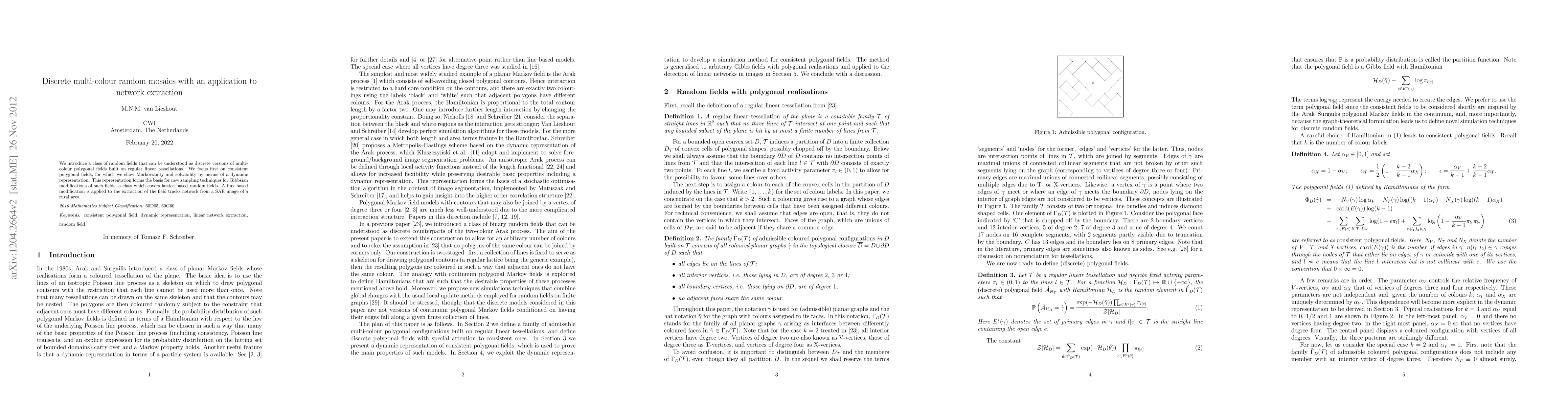 We introduce a class of random fields that can be understood as discrete versions of multi-colour polygonal fields built on regular linear tessellations. We focus fir st on consistent polygonal fields, for which we show Markovianity and solvability by means of a dynamic representation. This representation forms the basis for new sampling techniques for Gibbsian modifications of such fields, a class which cove rs lattice based random fields. A flux based modification is applied to the extracti on of the field tracks network from a SAR image of a rural area.