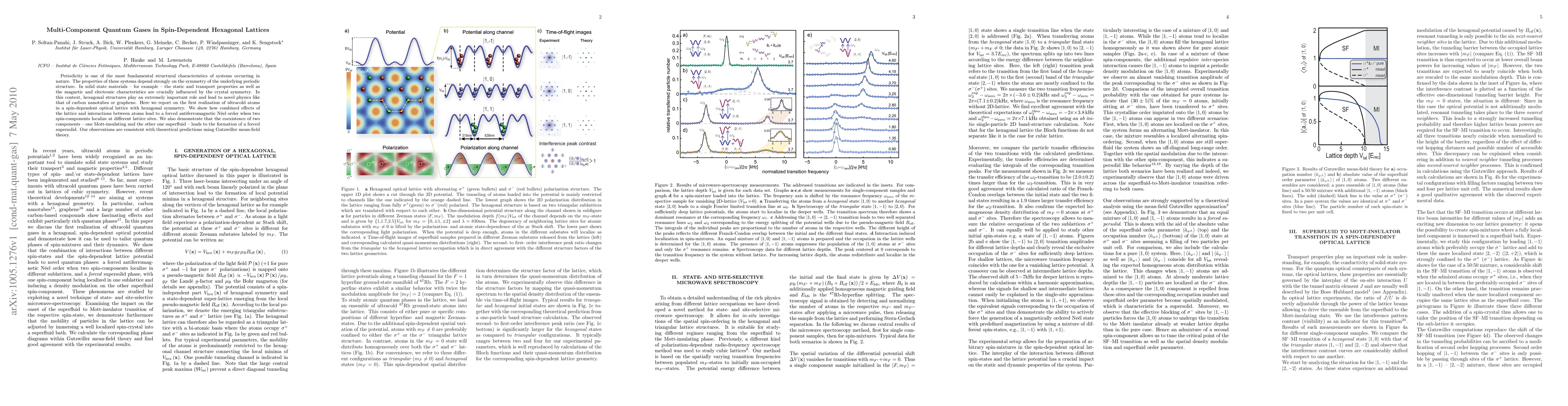 Periodicity is one of the most fundamental structural characteristics of systems occurring in nature. The properties of these systems depend strongly on the symmetry of the underlying periodic structure. In solid state materials - for example - the static and transport properties as well as the magnetic and electronic characteristics are crucially influenced by the crystal symmetry. In this context, hexagonal structures play an extremely important role and lead to novel physics like that of carbon nanotubes or graphene. Here we report on the first realization of ultracold atoms in a spin-dependent optical lattice with hexagonal symmetry. We show how combined effects of the lattice and interactions between atoms lead to a forced antiferromagnetic N\'eel order when two spin-components localize at different lattice sites. We also demonstrate that the coexistence of two components - one Mott-insulating and the other one superfluid - leads to the formation of a forced supersolid. Our observations are consistent with theoretical predictions using Gutzwiller mean-field theory.