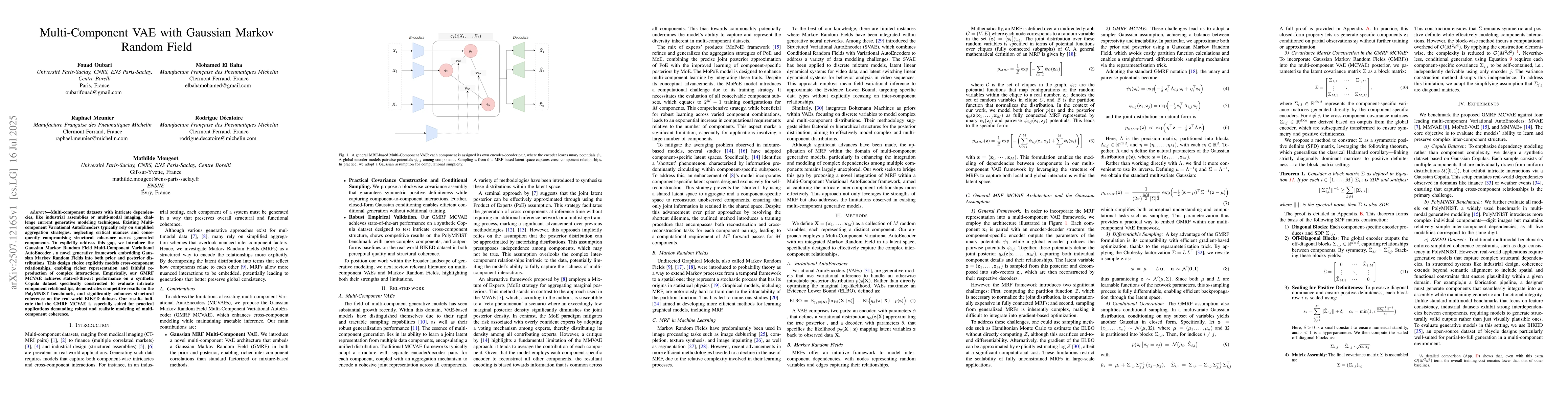 Multi-component datasets with intricate dependencies, like industrial assemblies or multi-modal imaging, challenge current generative modeling techniques. Existing Multi-component Variational AutoEncoders typically rely on simplified aggregation strategies, neglecting critical nuances and consequently compromising structural coherence across generated components. To explicitly address this gap, we introduce the Gaussian Markov Random Field Multi-Component Variational AutoEncoder , a novel generative framework embedding Gaussian Markov Random Fields into both prior and posterior distributions. This design choice explicitly models cross-component relationships, enabling richer representation and faithful reproduction of complex interactions. Empirically, our GMRF MCVAE achieves state-of-the-art performance on a synthetic Copula dataset specifically constructed to evaluate intricate component relationships, demonstrates competitive results on the PolyMNIST benchmark, and significantly enhances structural coherence on the real-world BIKED dataset. Our results indicate that the GMRF MCVAE is especially suited for practical applications demanding robust and realistic modeling of multi-component coherence