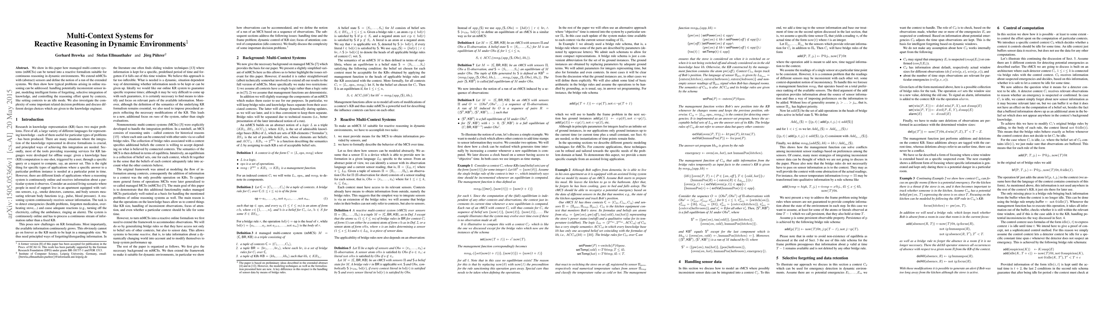 We show in this paper how managed multi-context systems (mMCSs) can be turned into a reactive formalism suitable for continuous reasoning in dynamic environments. We extend mMCSs with (abstract) sensors and define the notion of a run of the extended systems. We then show how typical problems arising in online reasoning can be addressed: handling potentially inconsistent sensor input, modeling intelligent forms of forgetting, selective integration of knowledge, and controlling the reasoning effort spent by contexts, like setting contexts to an idle mode. We also investigate the complexity of some important related decision problems and discuss different design choices which are given to the knowledge engineer.