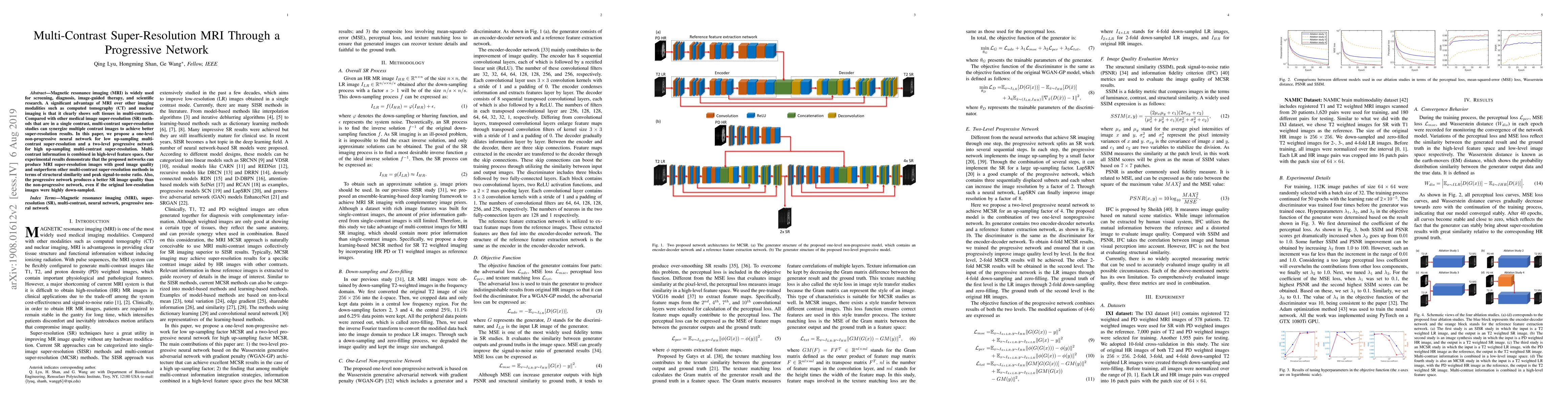 This paper proposes neural networks for multi-contrast super-resolution MRI, utilizing both a non-progressive network for low up-sampling and a two-level progressive network for high up-sampling. Experimental results show superior image quality and performance metrics compared to existing methods.