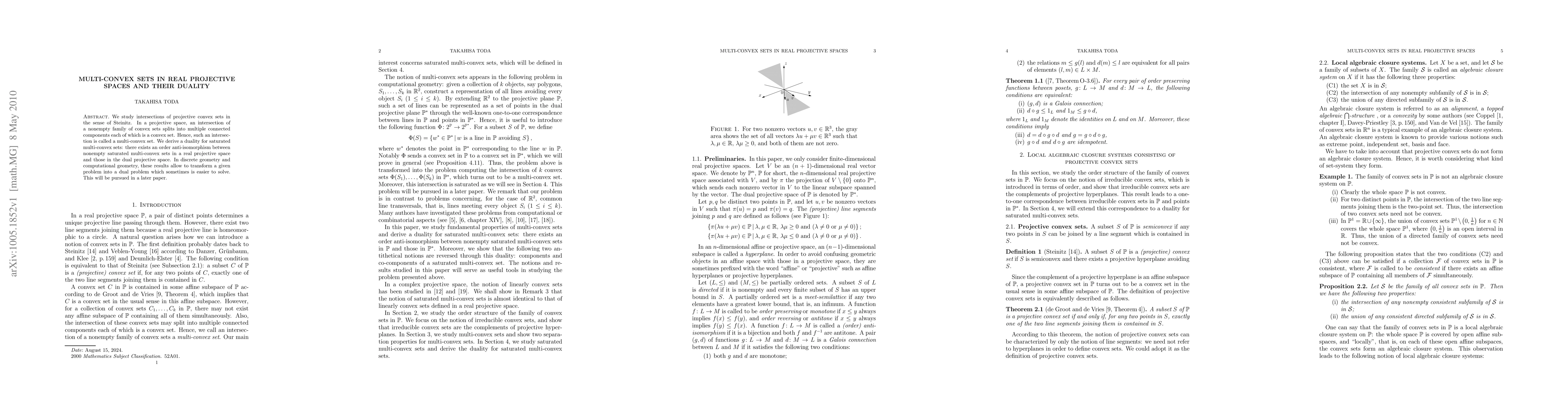 This paper explores intersections of projective convex sets, termed multi-convex sets, and establishes a duality between these sets in real projective spaces and their duals. This duality facilitates problem transformation in discrete and computational geometry, potentially simplifying problem-solving.