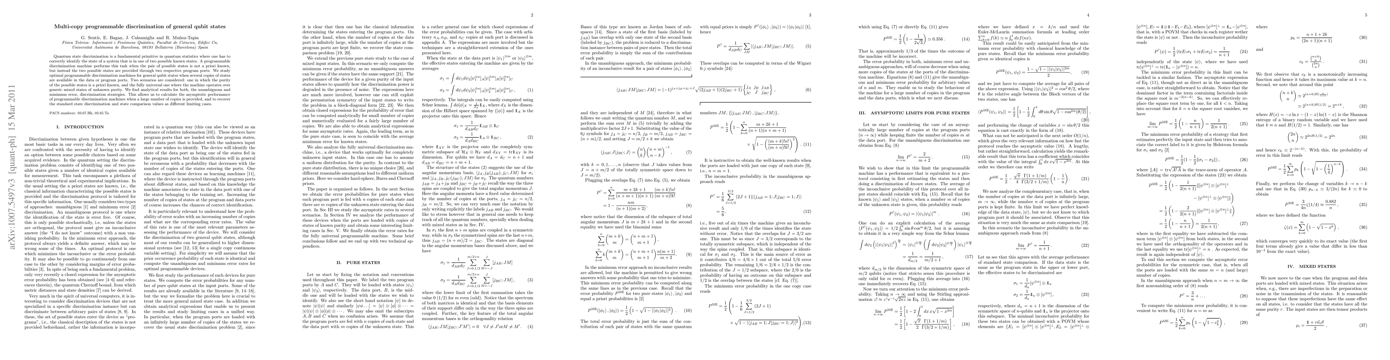 This paper investigates optimal programmable discrimination machines for identifying general qubit states when multiple copies are available, considering both known purity and fully universal mixed states. Analytical results for unambiguous and minimum error discrimination strategies are derived, revealing asymptotic performance for large copy numbers.