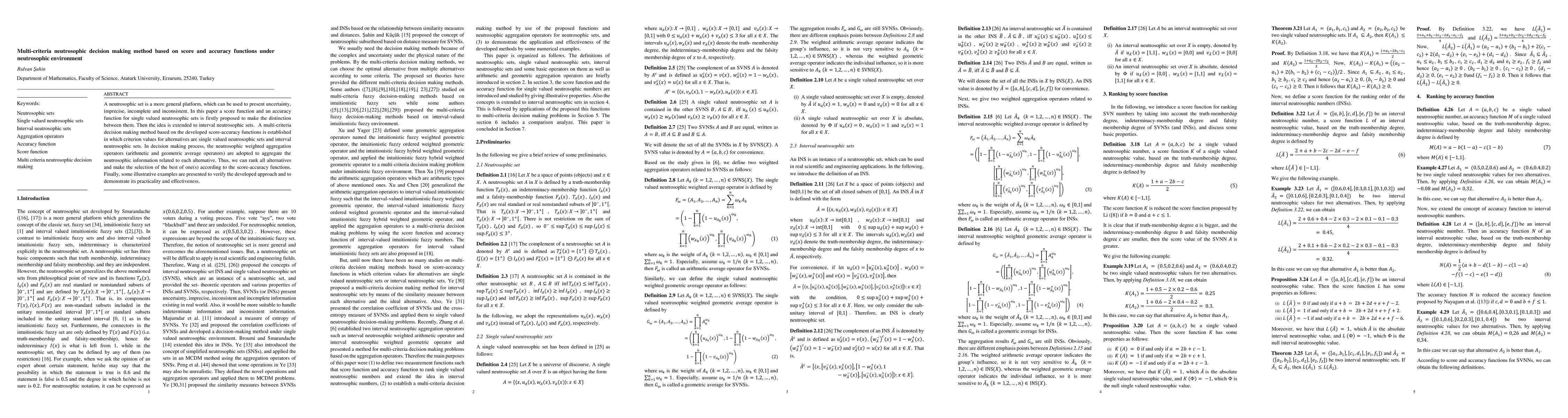 This paper introduces score and accuracy functions for single and interval valued neutrosophic sets to differentiate between them. It proposes a multi-criteria decision-making method using these functions and neutrosophic weighted aggregation operators to rank alternatives and select the best option, validated through practical examples.
