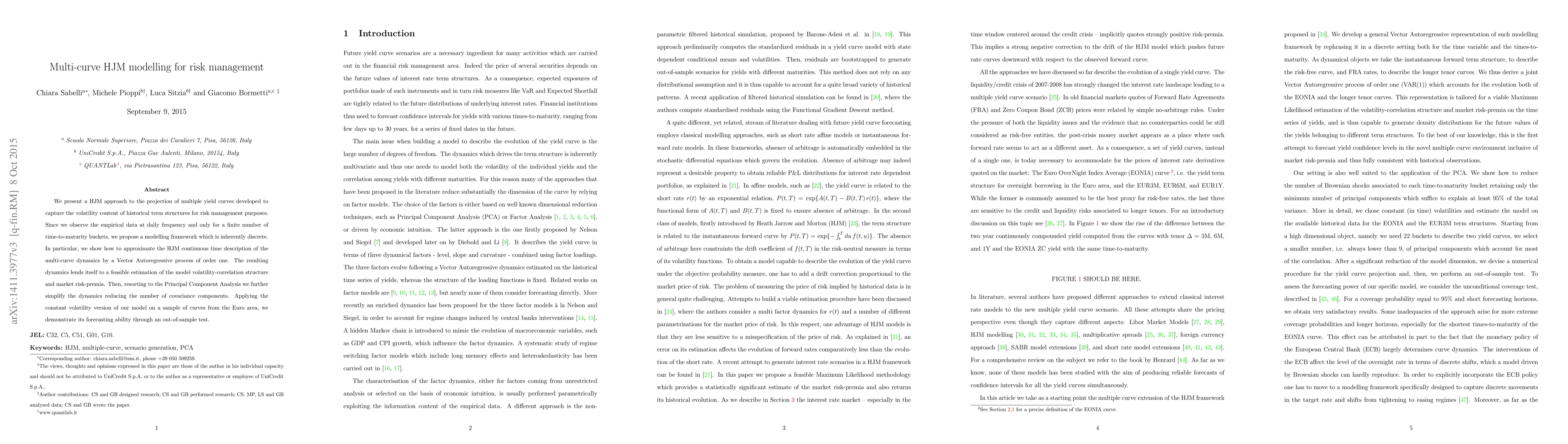 This paper develops a discrete HJM model for projecting multiple yield curves to capture historical term structure volatility for risk management. It uses a Vector Autoregressive process to approximate continuous dynamics and employs Principal Component Analysis to simplify the model, demonstrating its forecasting ability through out-of-sample tests on Euro area curves.