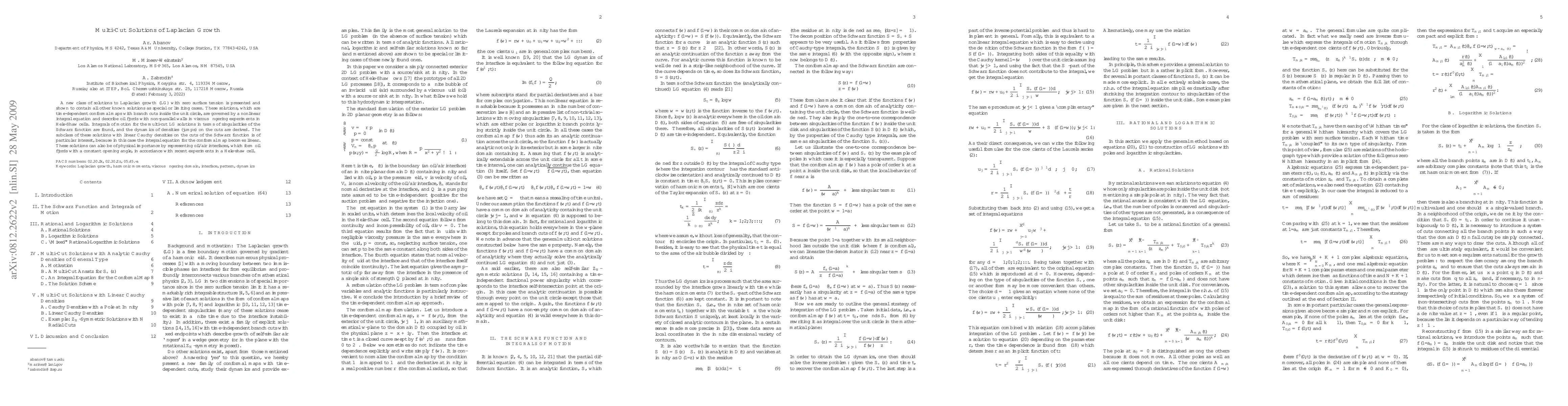 This paper introduces a new class of solutions to Laplacian growth characterized by time-dependent conformal maps with branch cuts, encompassing all known solutions. These solutions describe oil fjords in viscous fingering experiments and reveal linear integral equations for a specific subclass, representing oil/air interfaces with constant opening angles.