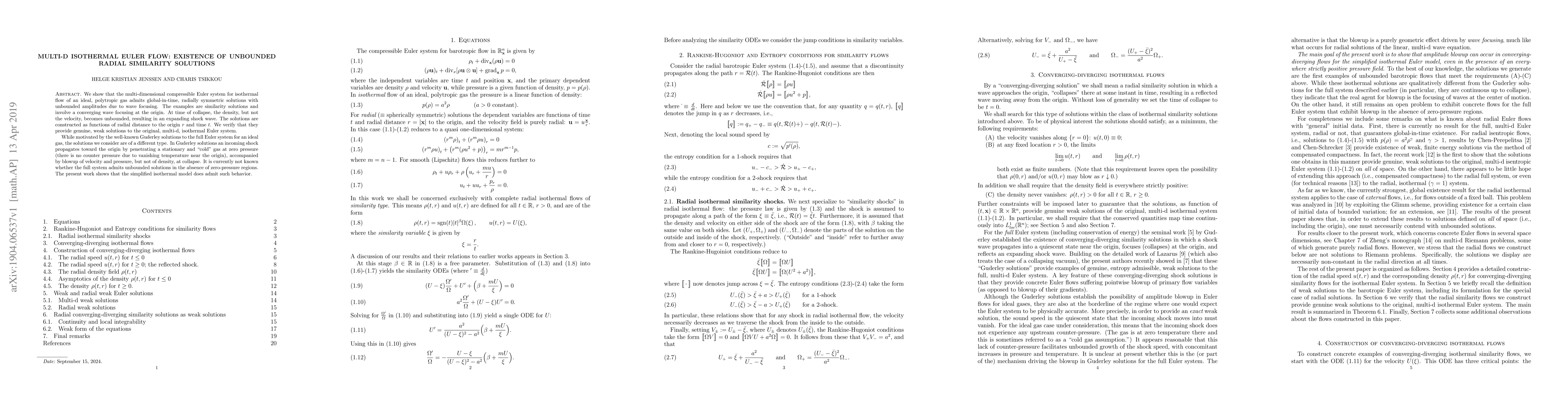 Researchers found that a simplified model of isothermal flow for an ideal gas can have unbounded solutions with expanding shock waves, which helps understand wave focusing in compressible Euler systems.