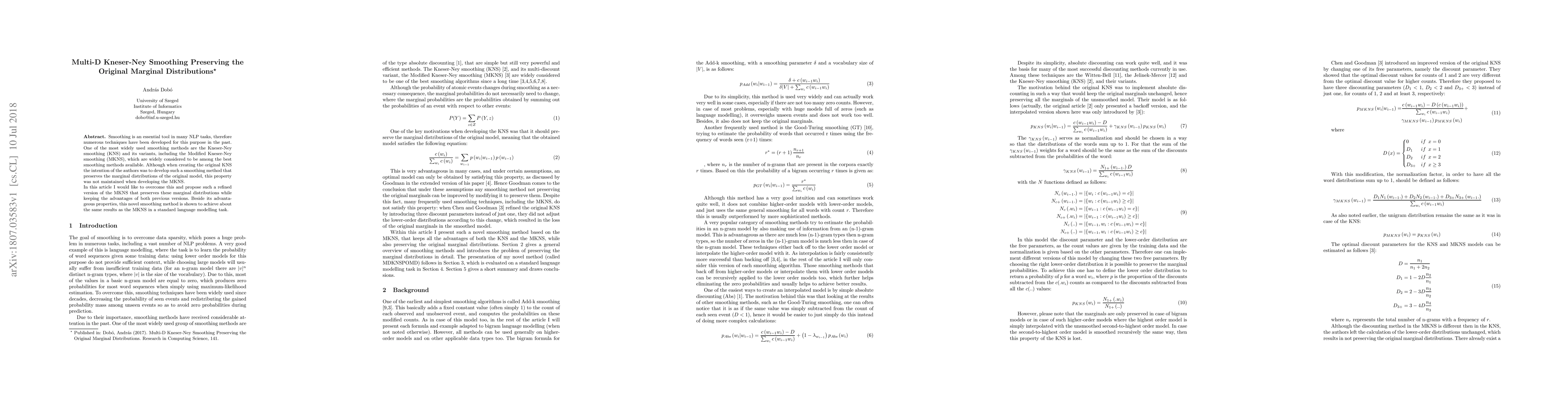 Smoothing is an essential tool in many NLP tasks, therefore numerous techniques have been developed for this purpose in the past. One of the most widely used smoothing methods are the Kneser-Ney smoothing (KNS) and its variants, including the Modified Kneser-Ney smoothing (MKNS), which are widely considered to be among the best smoothing methods available. Although when creating the original KNS the intention of the authors was to develop such a smoothing method that preserves the marginal distributions of the original model, this property was not maintained when developing the MKNS. In this article I would like to overcome this and propose such a refined version of the MKNS that preserves these marginal distributions while keeping the advantages of both previous versions. Beside its advantageous properties, this novel smoothing method is shown to achieve about the same results as the MKNS in a standard language modelling task.
