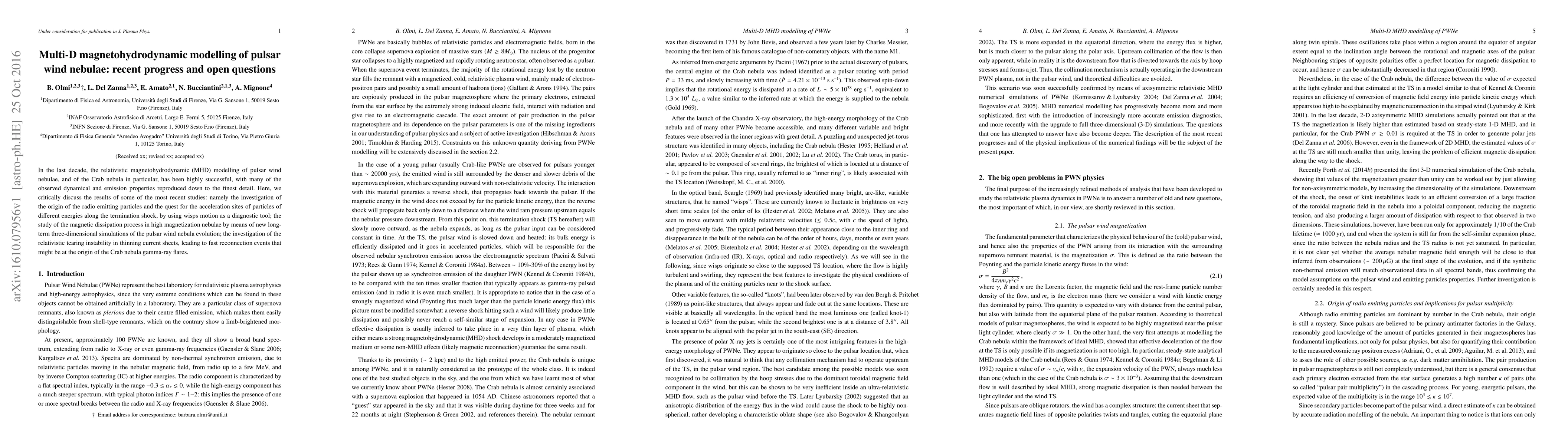 In the last decade, the relativistic magnetohydrodynamic (MHD) modelling of pulsar wind nebulae, and of the Crab nebula in particular, has been highly successful, with many of the observed dynamical and emission properties reproduced down to the finest detail. Here, we critically discuss the results of some of the most recent studies: namely the investigation of the origin of the radio emitting particles and the quest for the acceleration sites of particles of different energies along the termination shock, by using wisps motion as a diagnostic tool; the study of the magnetic dissipation process in high magnetization nebulae by means of new long-term three-dimensional simulations of the pulsar wind nebula evolution; the investigation of the relativistic tearing instability in thinning current sheets, leading to fast reconnection events that might be at the origin of the Crab nebula gamma-ray flares.