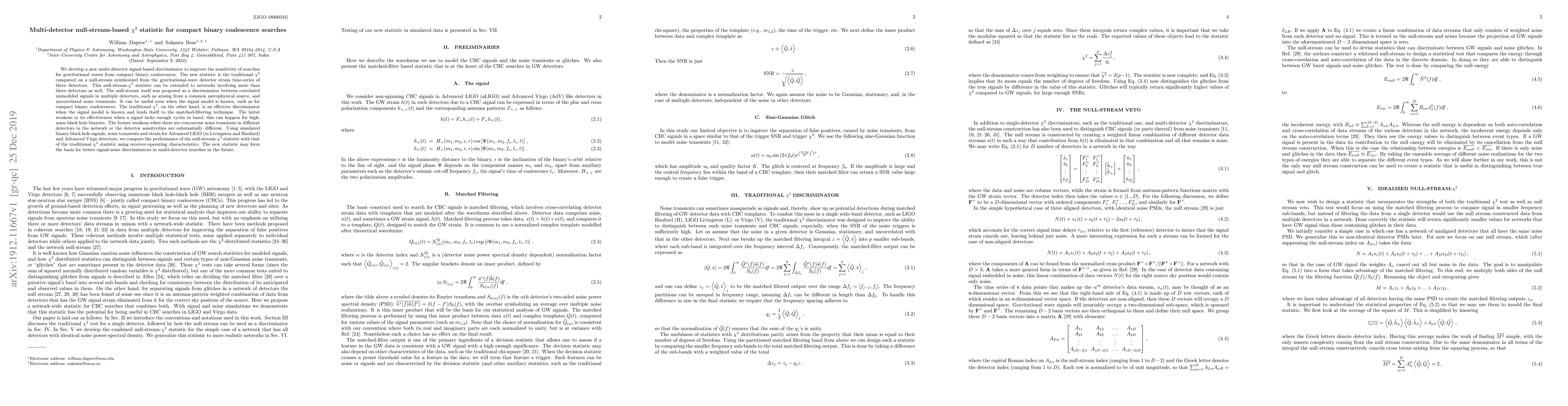 This paper introduces a new multi-detector $\chi^2$ statistic based on a null-stream to enhance the sensitivity of gravitational wave searches for compact binary coalescences. The proposed null-stream-$\chi^2$ statistic outperforms traditional $\chi^2$ in scenarios where signal models are known but traditional matched-filtering is less effective.