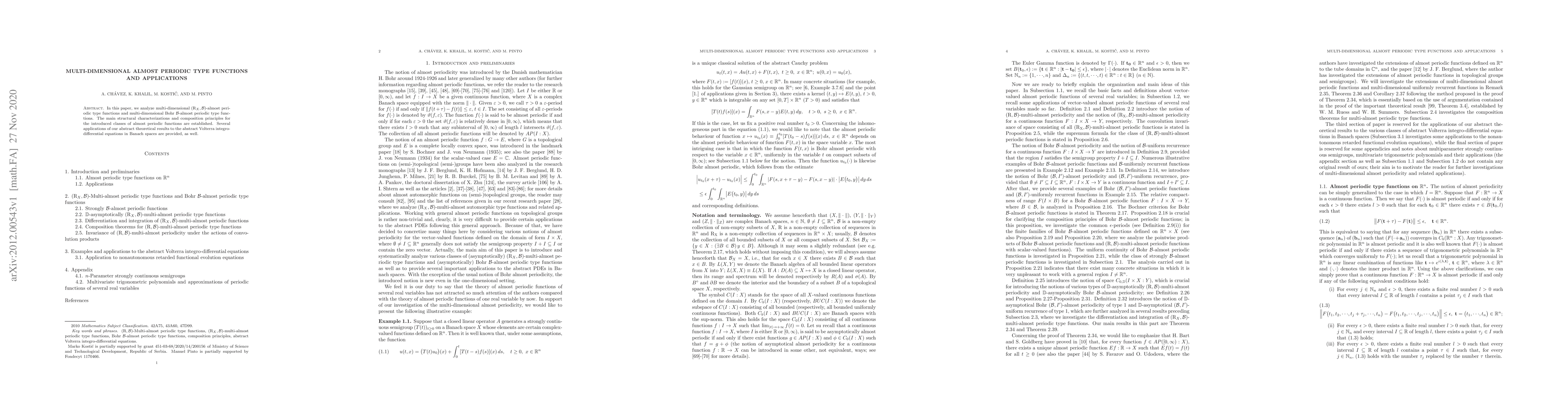 This paper investigates multi-dimensional almost periodic type functions, establishing their structural characterizations and composition principles. It also applies these theoretical results to abstract Volterra integro-differential equations in Banach spaces.