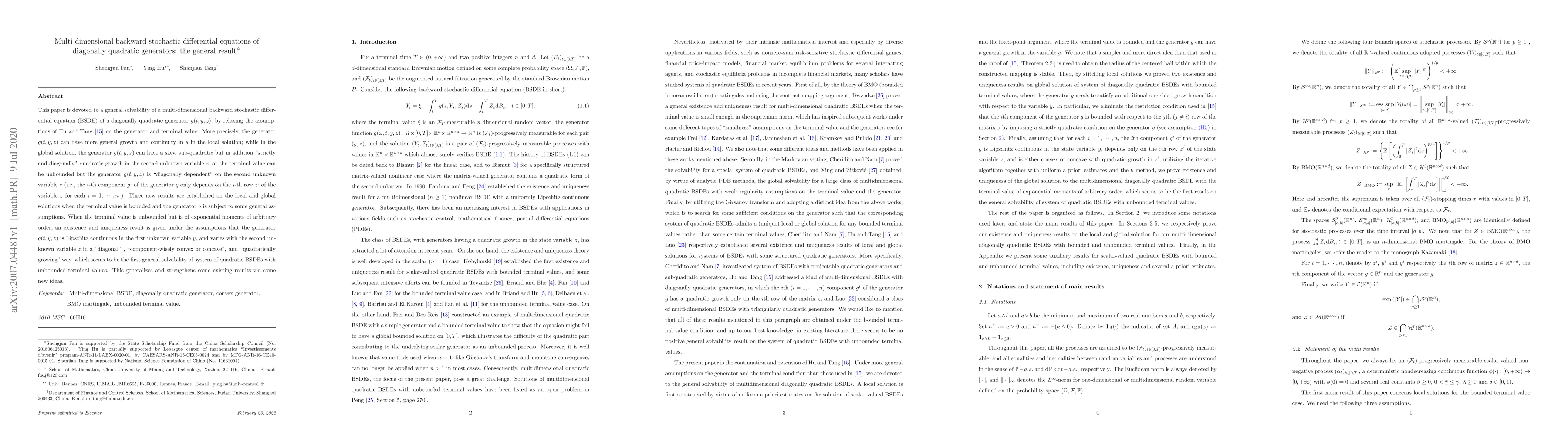 This paper establishes general solvability of multi-dimensional backward stochastic differential equations (BSDEs) with diagonally quadratic generators, allowing for unbounded terminal values and relaxing previous assumptions on generator growth and continuity.