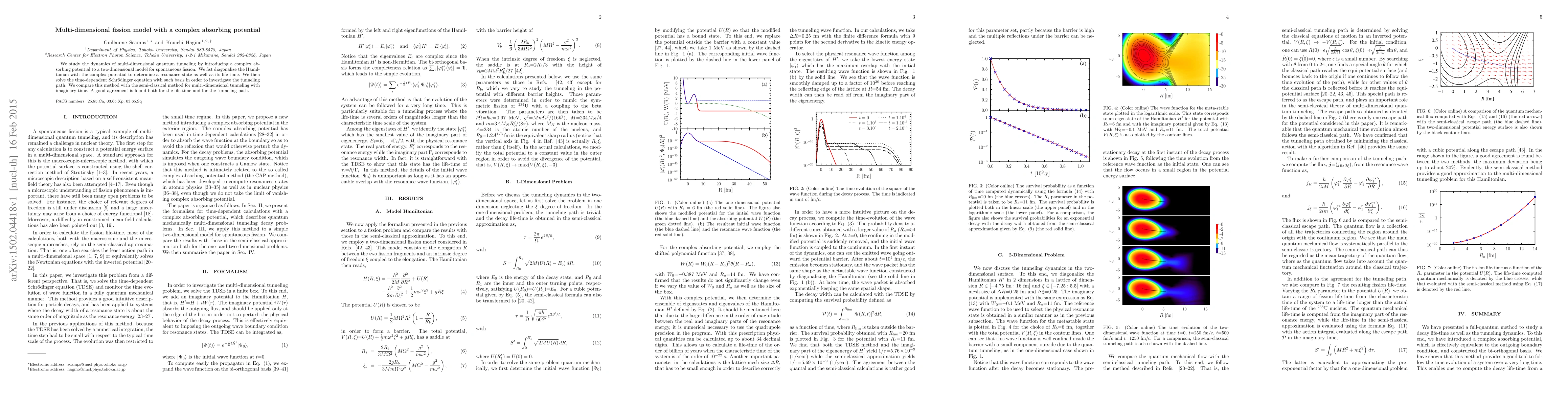 This paper investigates multi-dimensional quantum tunneling in spontaneous fission using a two-dimensional model with a complex absorbing potential. The authors determine resonance states and lifetimes by diagonalizing the Hamiltonian, and find good agreement between their method and semi-classical approaches for tunneling paths and lifetimes.
