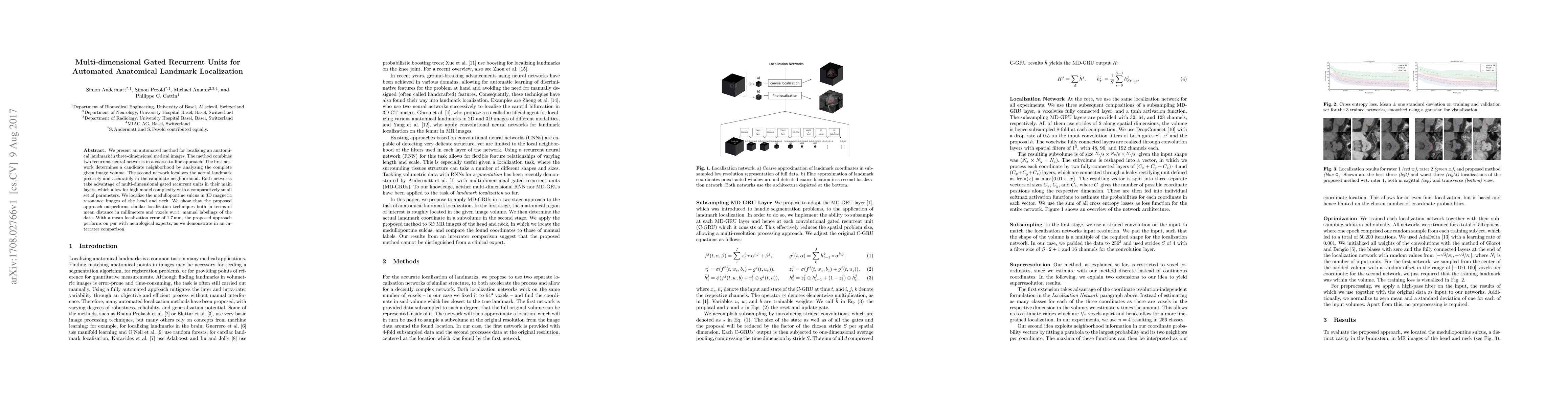 This paper proposes an automated method using multi-dimensional gated recurrent units to localize anatomical landmarks in 3D medical images. The method employs a coarse-to-fine approach with two recurrent neural networks, achieving high accuracy and outperforming similar techniques, with a mean localization error of 1.7 mm.