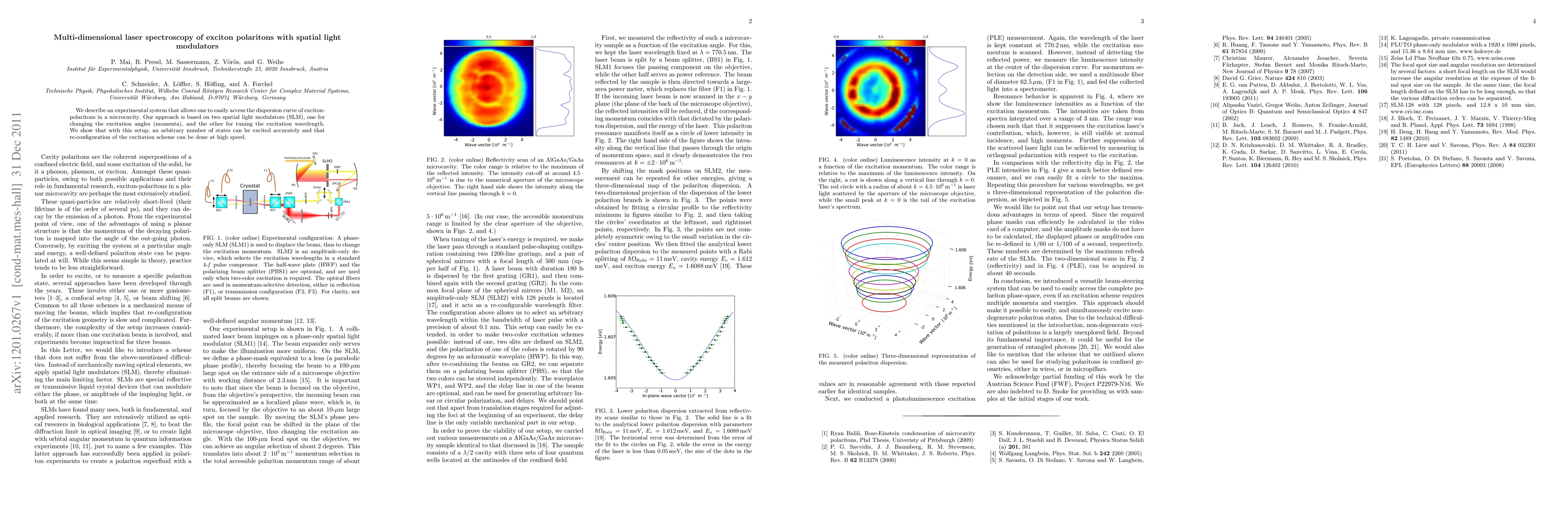 This paper presents an experimental setup using two spatial light modulators to accurately access the dispersion curve of exciton-polaritons in a microcavity, enabling high-speed re-configuration and excitation of an arbitrary number of states.