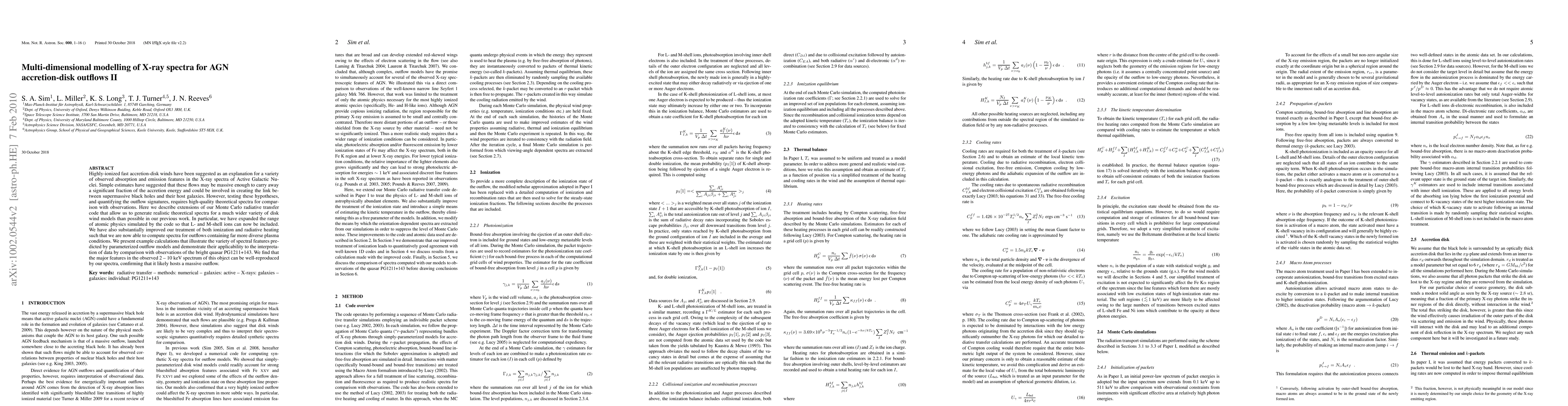 Highly-ionized fast accretion-disk winds have been suggested as an explanation for a variety of observed absorption and emission features in the X-ray spectra of Active Galactic Nuclei. Simple estimates have suggested that these flows may be massive enough to carry away a significant fraction of the accretion energy and could be involved in creating the link between supermassive black holes and their host galaxies. However, testing these hypotheses, and quantifying the outflow signatures, requires high-quality theoretical spectra for comparison with observations. Here we describe extensions of our Monte Carlo radiative transfer code that allow us to generate realistic theoretical spectra for a much wider variety of disk wind models than possible in our previous work. In particular, we have expanded the range of atomic physics simulated by the code so that L- and M-shell ions can now be included. We have also substantially improved our treatment of both ionization and radiative heating such that we are now able to compute spectra for outflows containing far more diverse plasma conditions. We present example calculations that illustrate the variety of spectral features predicted by parametrized outflow models and demonstrate their applicability to the interpretation of data by comparison with observations of the bright quasar PG1211+143. We find that the major features in the observed 2 - 10 keV spectrum of this object can be well-reproduced by our spectra, confirming that it likely hosts a massive outflow.