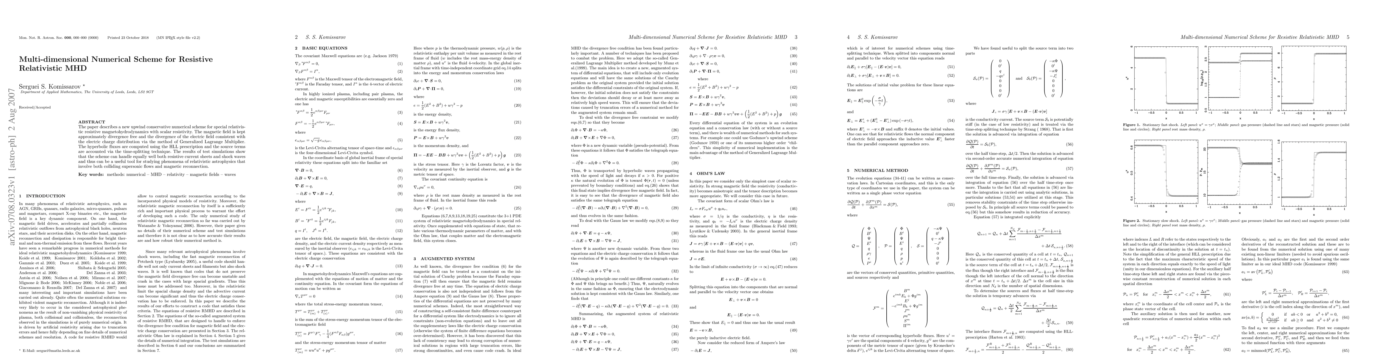The paper describes a new upwind conservative numerical scheme for special relativistic resistive magnetohydrodynamics with scalar resistivity. The magnetic field is kept approximately divergence free and the divergence of the electric field consistent with the electric charge distribution via the method of Generalized Lagrange Multiplier. The hyperbolic fluxes are computed using the HLL prescription and the source terms are accounted via the time-splitting technique. The results of test simulations show that the scheme can handle equally well both resistive current sheets and shock waves and thus can be a useful tool for studying phenomena of relativistic astrophysics that involve both colliding supersonic flows and magnetic reconnection.