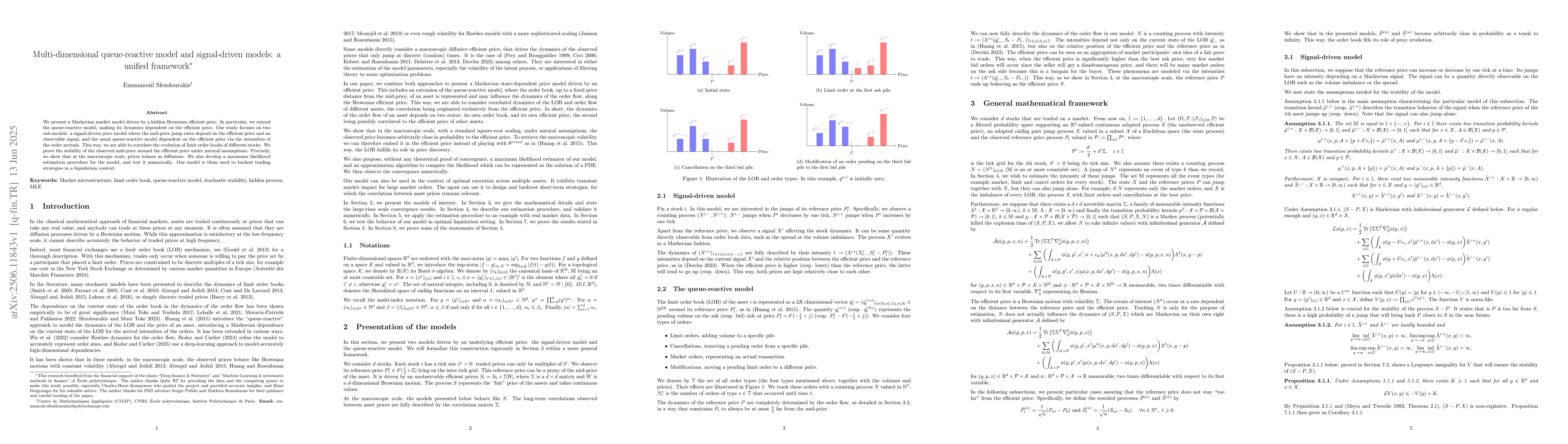 We present a Markovian market model driven by a hidden Brownian efficient price. In particular, we extend the queue-reactive model, making its dynamics dependent on the efficient price. Our study focuses on two sub-models: a signal-driven price model where the mid-price jump rates depend on the efficient price and an observable signal, and the usual queue-reactive model dependent on the efficient price via the intensities of the order arrivals. This way, we are able to correlate the evolution of limit order books of different stocks. We prove the stability of the observed mid-price around the efficient price under natural assumptions. Precisely, we show that at the macroscopic scale, prices behave as diffusions. We also develop a maximum likelihood estimation procedure for the model, and test it numerically. Our model is them used to backest trading strategies in a liquidation context.