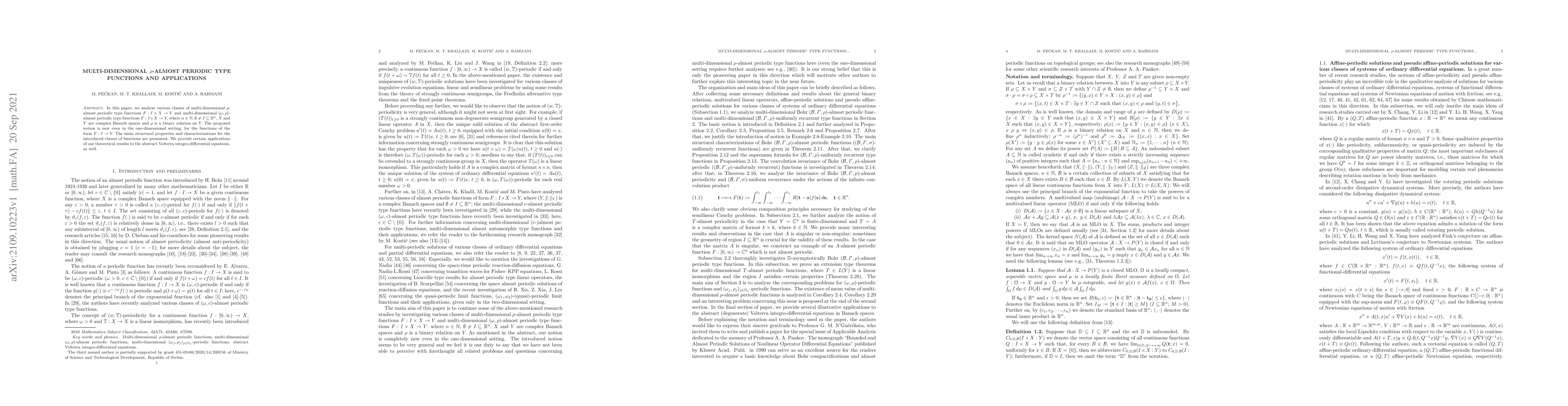 This paper introduces new classes of multi-dimensional $\rho$-almost periodic type functions and $(\omega,\rho)$-almost periodic type functions, presenting their structural properties and characterizations. Applications to abstract Volterra integro-differential equations are also discussed.