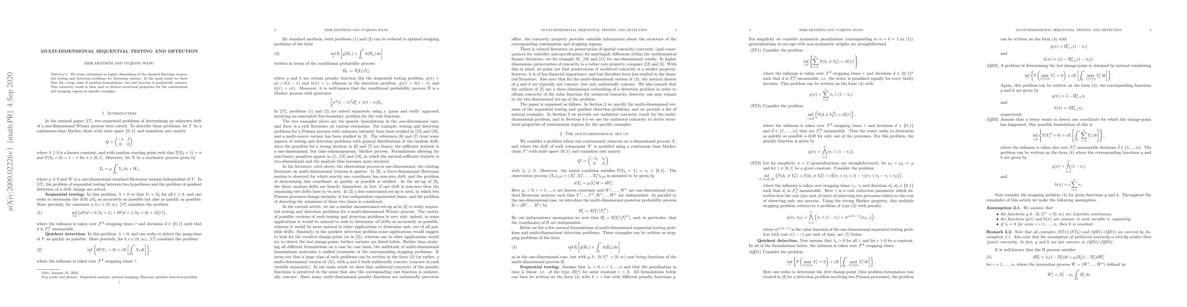 We study extensions to higher dimensions of the classical Bayesian sequential testing and detection problems for Brownian motion. In the main result we show that, for a large class of problem formulations, the cost function is unilaterally concave. This concavity result is then used to deduce structural properties for the continuation and stopping regions in specific examples.