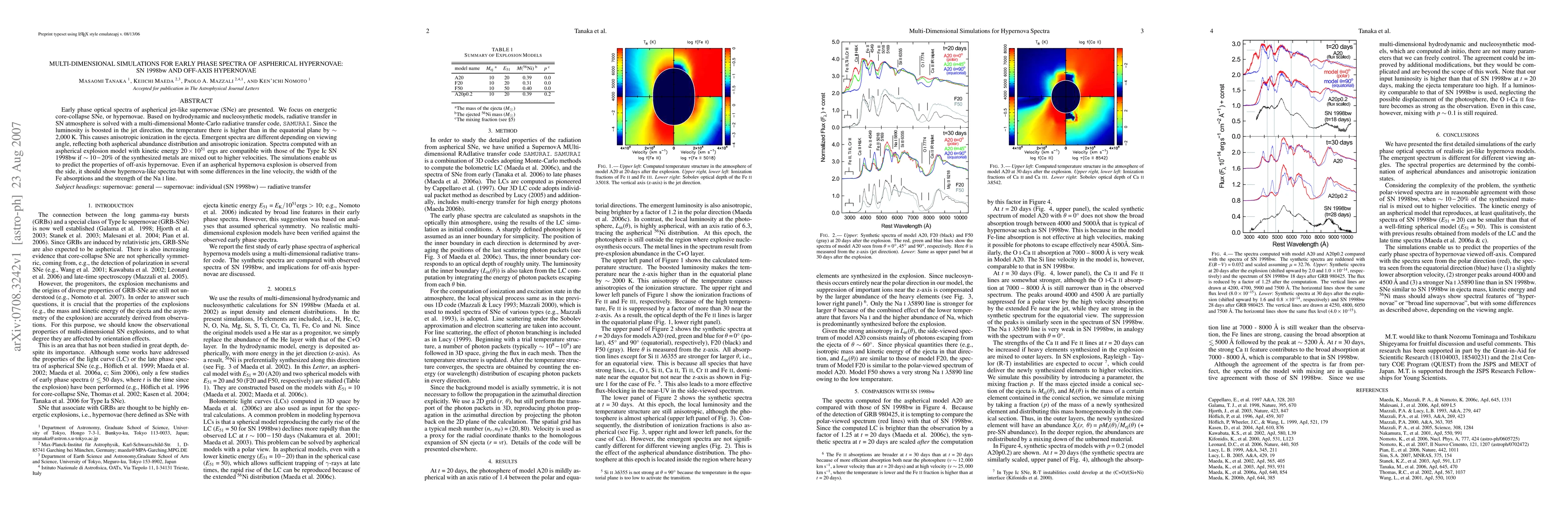 Early phase optical spectra of aspherical jet-like supernovae (SNe) are presented. We focus on energetic core-collapse SNe, or hypernovae. Based on hydrodynamic and nucleosynthetic models, radiative transfer in SN atmosphere is solved with a multi-dimensional Monte-Carlo radiative transfer code, SAMURAI. Since the luminosity is boosted in the jet direction, the temperature there is higher than in the equatorial plane by ~ 2,000 K. This causes anisotropic ionization in the ejecta. Emergent spectra are different depending on viewing angle, reflecting both aspherical abundance distribution and anisotropic ionization. Spectra computed with an aspherical explosion model with kinetic energy 20 x 10^{51} ergs are compatible with those of the Type Ic SN 1998bw if ~ 10-20% of the synthesized metals are mixed out to higher velocities. The simulations enable us to predict the properties of off-axis hypernovae. Even if an aspherical hypernova explosion is observed from the side, it should show hypernova-like spectra but with some differences in the line velocity, the width of the Fe absorptions and the strength of the Na I line.