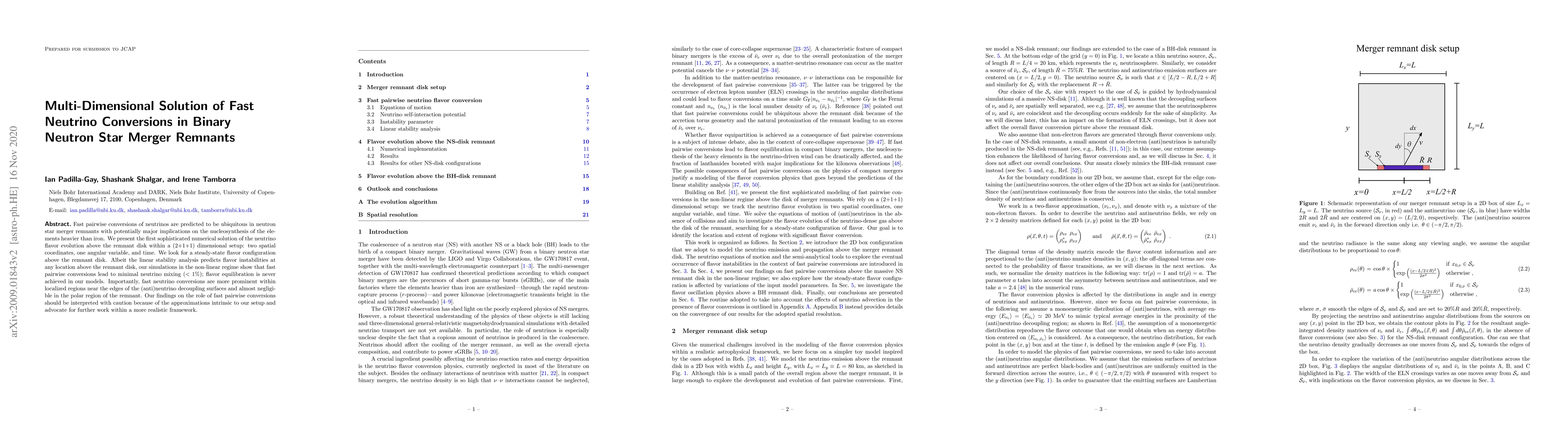 This paper explores fast neutrino conversions in neutron star merger remnants using a (2+1+1) dimensional numerical model, finding minimal neutrino mixing (<1%) despite predicted flavor instabilities. The study highlights that conversions are most significant near the edges of the decoupling surfaces, with negligible effects in the polar regions.