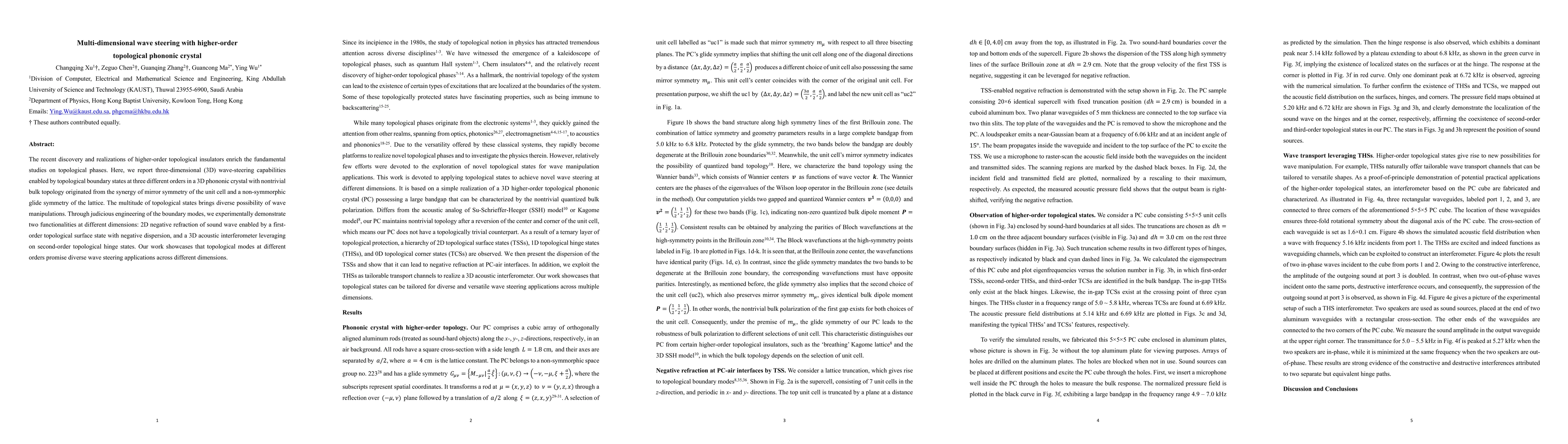 This research investigates 3D phononic crystals with higher-order topological insulator properties, demonstrating 2D negative refraction of sound and a 3D acoustic interferometer via topological boundary states, showcasing diverse wave steering functionalities.