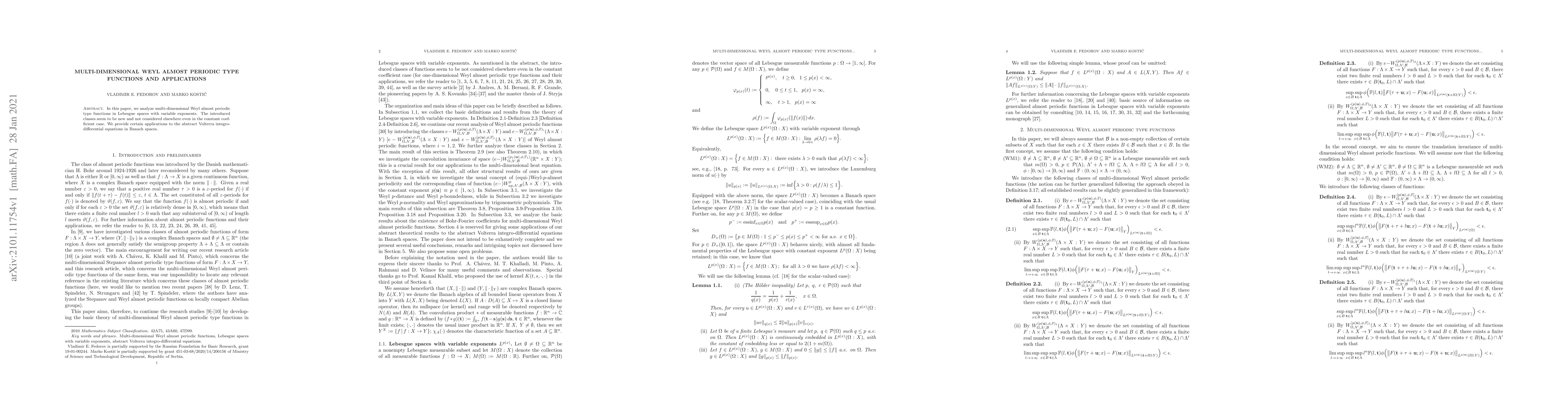 This paper explores novel multi-dimensional Weyl almost periodic type functions in Lebesgue spaces with variable exponents, offering applications to abstract Volterra integro-differential equations in Banach spaces. The introduced function classes are presented as new and distinct from existing studies.