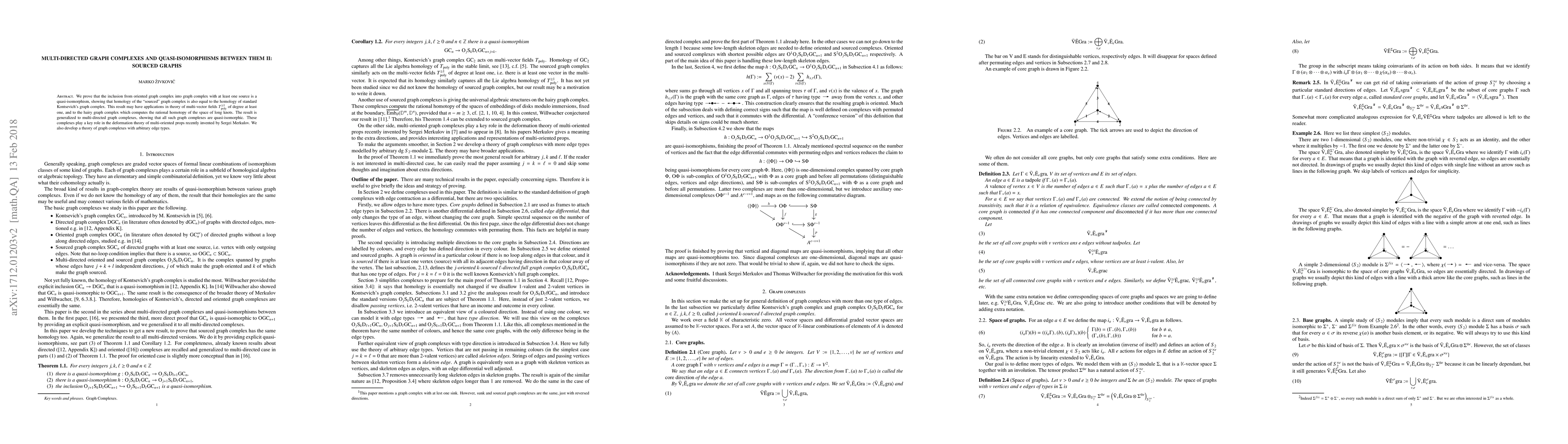 We prove that the inclusion from oriented graph complex into graph complex with at least one source is a quasi-isomorphism, showing that homology of the "sourced" graph complex is also equal to the homology of standard Kontsevich's graph complex. This result may have applications in theory of multi-vector fields $T_{\rm poly}^{\geq 1}$ of degree at least one, and to the hairy graph complex which computes the rational homotopy of the space of long knots. The result is generalized to multi-directed graph complexes, showing that all such graph complexes are quasi-isomorphic. These complexes play a key role in the deformation theory of multi-oriented props recently invented by Sergei Merkulov. We also develop a theory of graph complexes with arbitrary edge types.