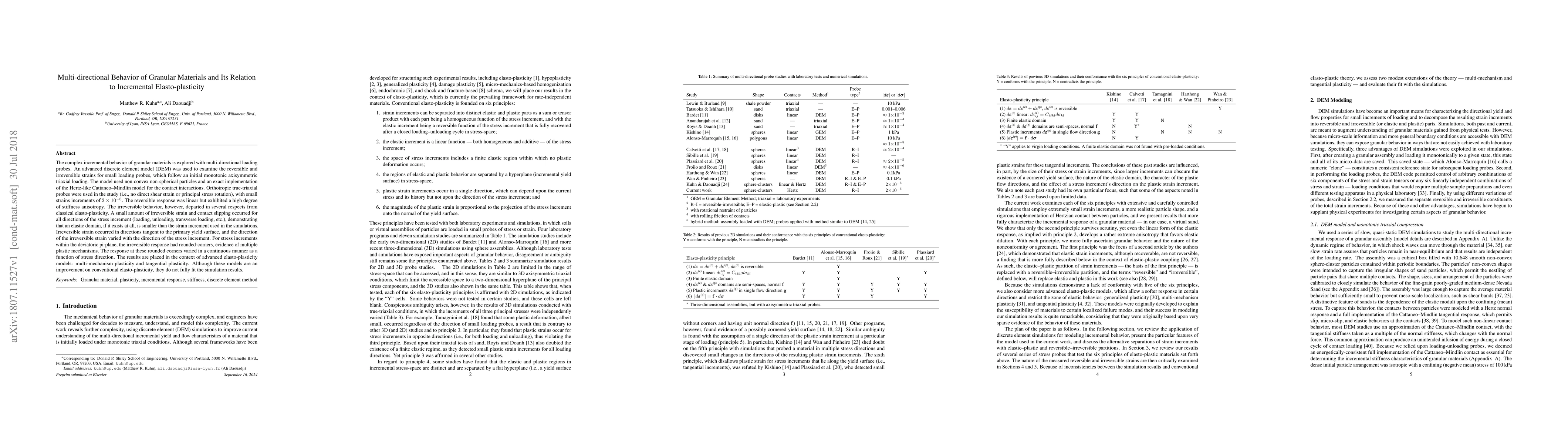 This paper investigates the incremental behavior of granular materials under multi-directional loading using a discrete element model, revealing that the irreversible strain exhibits complex behavior not fully captured by conventional elasto-plasticity, suggesting the need for advanced plasticity models.