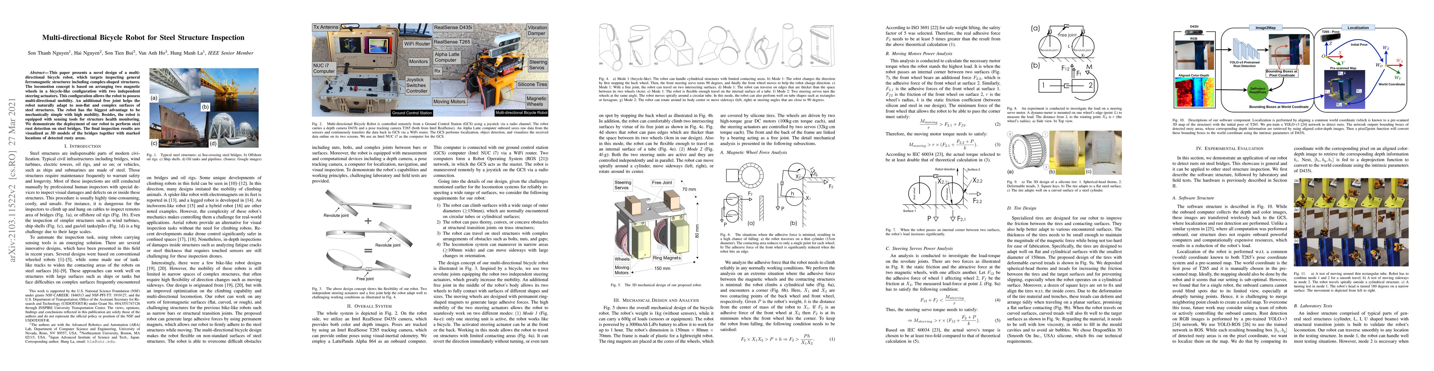 The paper introduces a multi-directional bicycle robot with magnetic wheels and independent steering actuators, enabling it to navigate complex steel structures effectively.