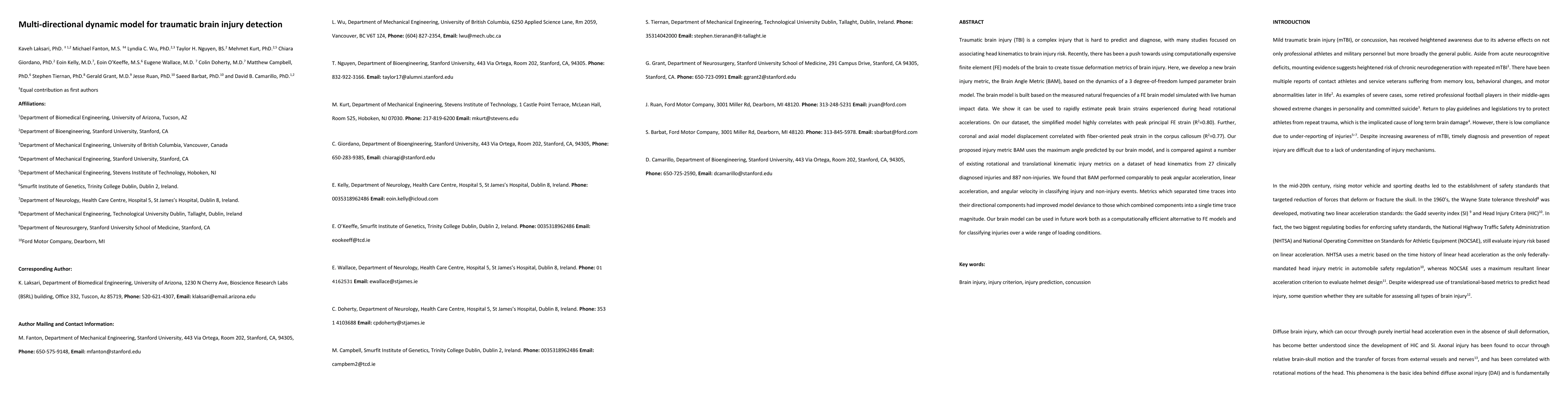 This paper develops a simplified 3 degree-of-freedom lumped-parameter brain model to rapidly estimate peak brain strains during head rotational accelerations, showing strong correlation with finite element model strains. The proposed injury criteria based on the model performed comparably to existing metrics in classifying traumatic brain injuries.