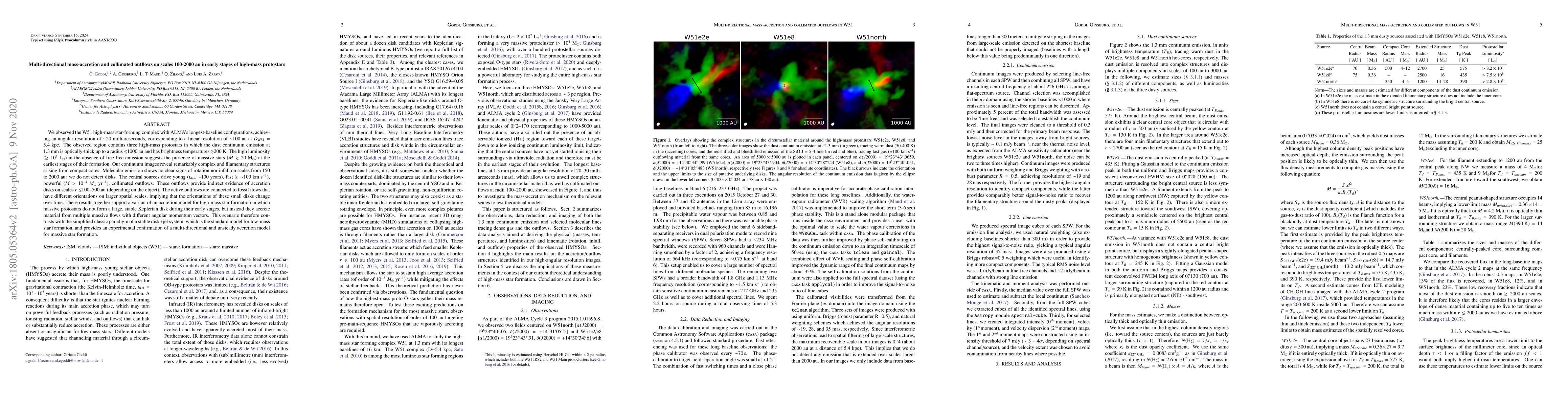 Researchers used ALMA to observe high-mass star formation in W51, finding evidence of collimated outflows that suggest a variant of accretion model for massive star formation, contradicting the classic paradigm of a stable disk+jet system.