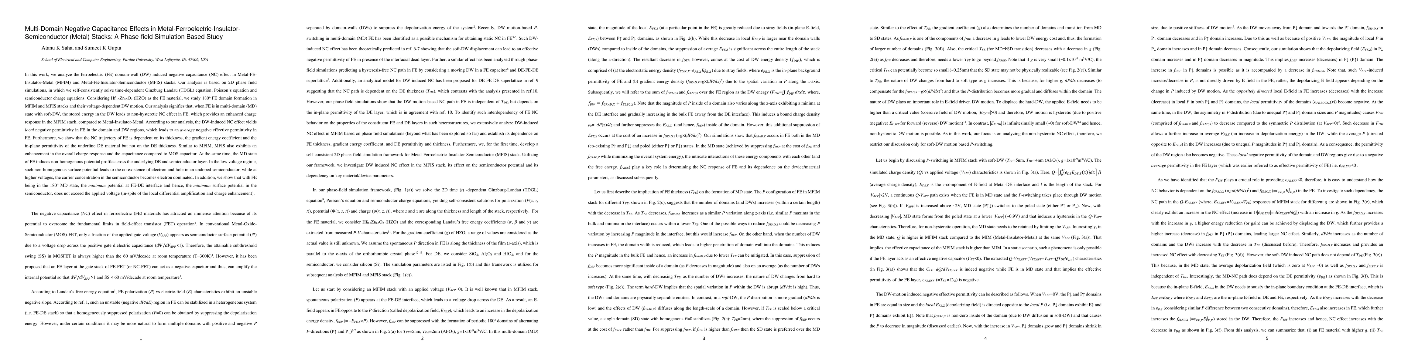 This study uses phase-field simulations to explore the negative capacitance effect in Metal-Ferroelectric-Insulator-Metal (MFIM) and Metal-Ferroelectric-Insulator-Semiconductor (MFIS) stacks, particularly focusing on HZO as the ferroelectric material. The analysis reveals that multi-domain ferroelectric states with soft domain walls lead to enhanced charge response and local negative permittivity, improving overall capacitance and charge response compared to conventional Metal-Insulator-Metal stacks.