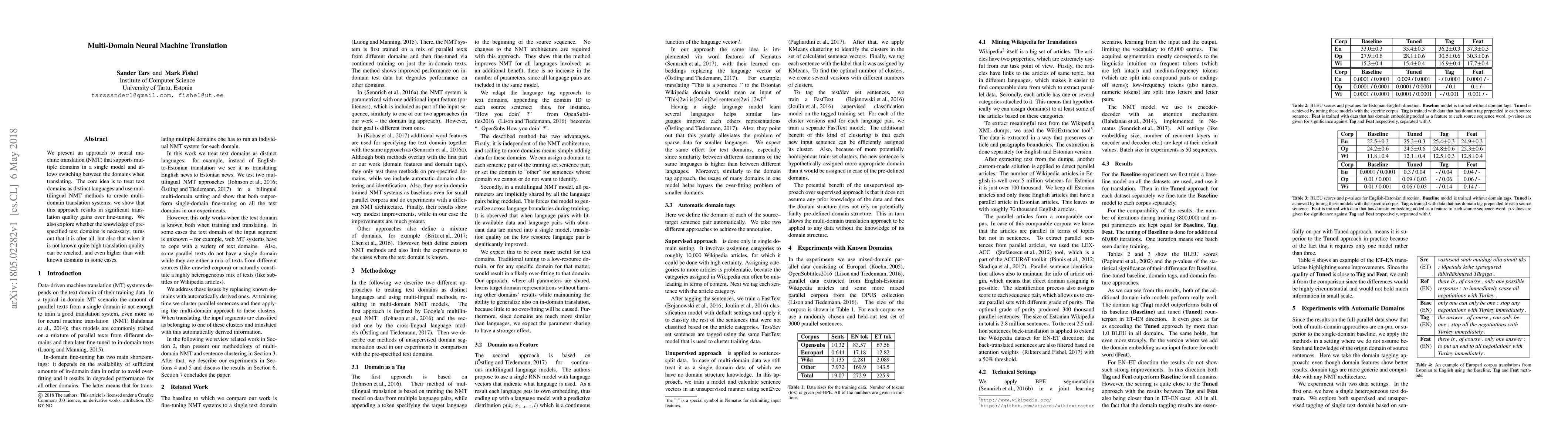 This paper proposes a neural machine translation (NMT) method that integrates multiple text domains within a single model, treating domains as distinct languages. The approach achieves better translation quality compared to fine-tuning and reveals that while domain knowledge is beneficial, high-quality translations can still be attained without it.