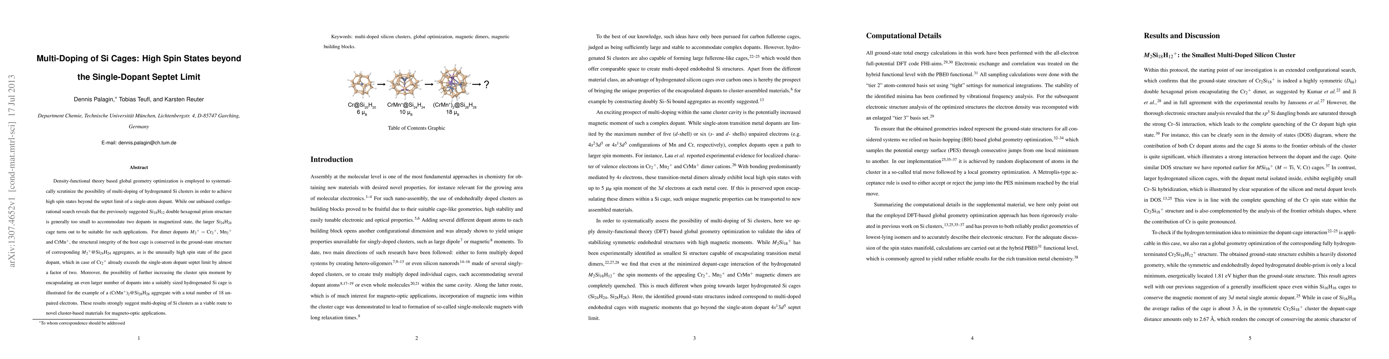 This research explores the potential of multi-doping hydrogenated Si clusters to achieve high spin states exceeding the septet limit of single-atom dopants using density-functional theory. The Si24H24 cage is found suitable for accommodating dopants like Cr2+, Mn2+, and CrMn+ while maintaining structural integrity and high spin states, indicating the viability of multi-doping for magneto-optic applications.