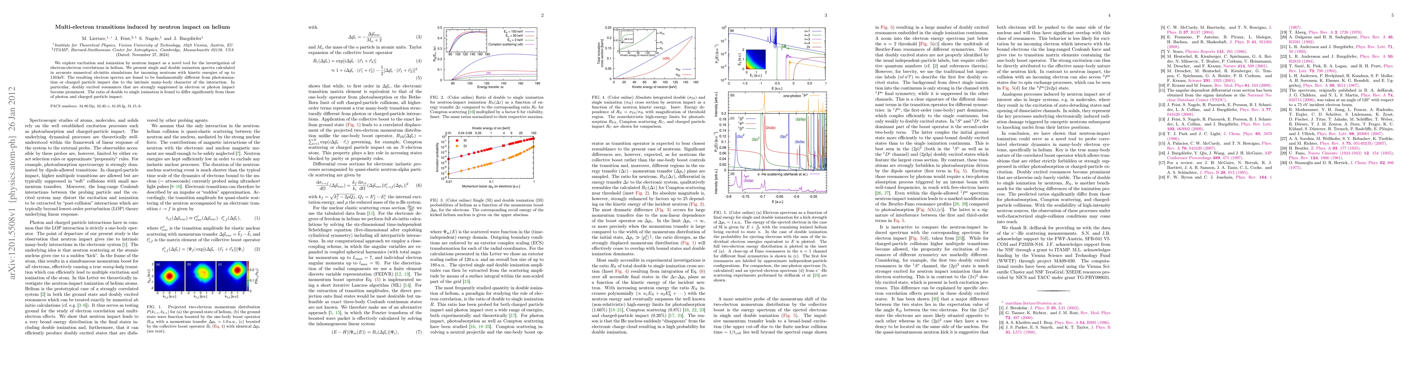 We explore excitation and ionization by neutron impact as a novel tool for the investigation of electron-electron correlations in helium. We present single and double ionization spectra calculated in accurate numerical ab-initio simulations for incoming neutrons with kinetic energies of up to 150 keV. The resulting electron spectra are found to be fundamentally different from photoioniza- tion or charged particle impact due to the intrinsic many-body character of the interaction. In particular, doubly excited resonances that are strongly suppressed in electron or photon impact become prominent. The ratio of double to single ionization is found to differ significantly from those of photon and charged particle impact.