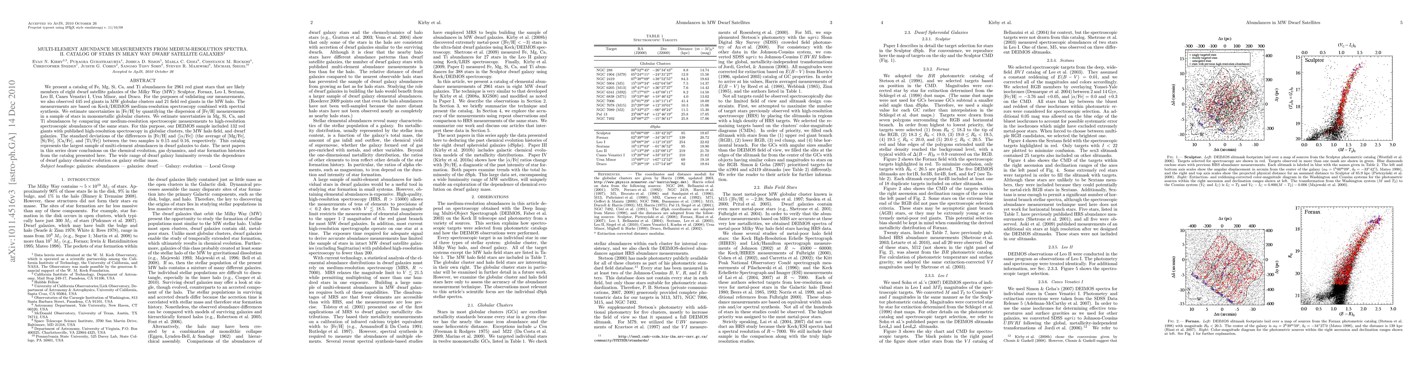 This paper catalogs Fe, Mg, Si, Ca, and Ti abundances for 2961 red giants in eight Milky Way dwarf satellite galaxies, using Keck/DEIMOS spectroscopy. It also includes validation measurements for 445 red giants in globular clusters and 21 field stars, establishing the largest sample of multi-element abundances in dwarf galaxies to date. The study aims to inform chemical evolution, gas dynamics, and star formation histories.