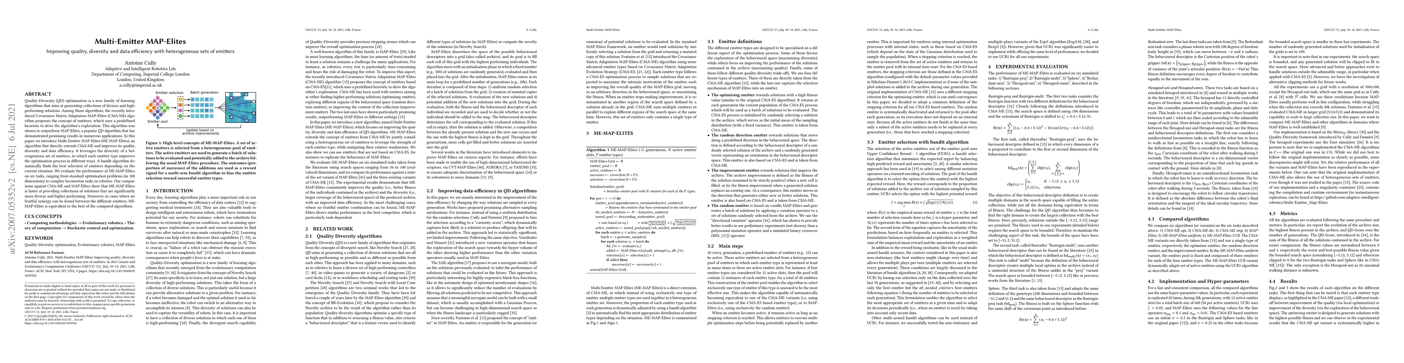 This paper introduces Multi-Emitter MAP-Elites (ME-MAP-Elites), an extension of the CMA-ME algorithm that enhances quality, diversity, and convergence speed through a heterogeneous set of emitters. ME-MAP-Elites dynamically selects the best emitters using a bandit algorithm, outperforming both CMA-ME and MAP-Elites in diverse optimisation tasks.