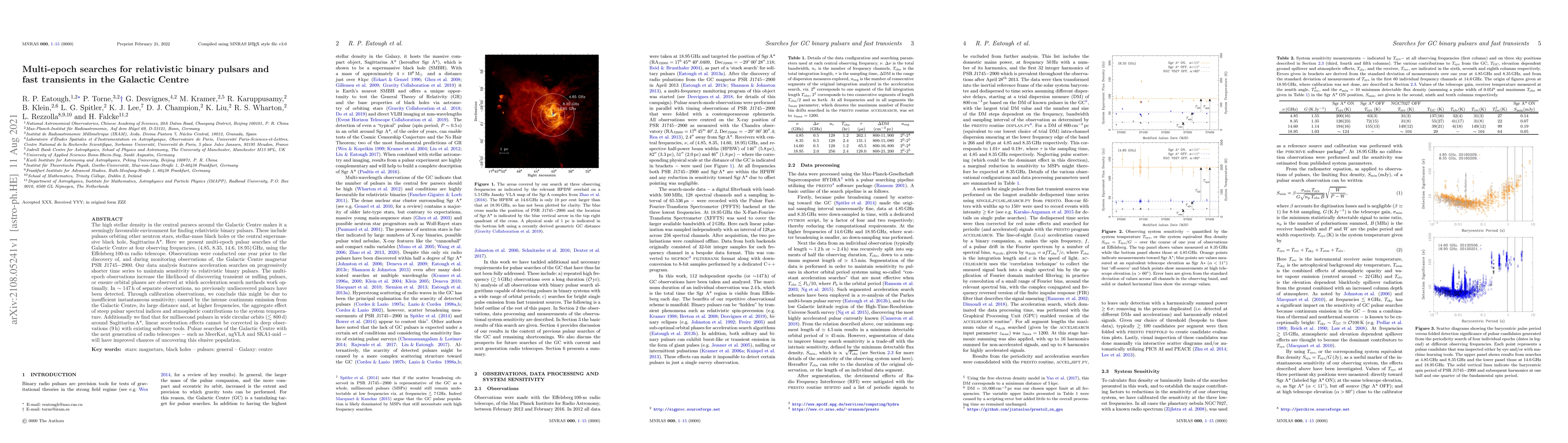 This paper reports multi-epoch pulsar searches in the Galactic Centre using the Effelsberg telescope, finding no new pulsars likely due to sensitivity issues and intense background emission. Future telescopes like MeerKat and SKA1-mid are expected to improve detection chances.