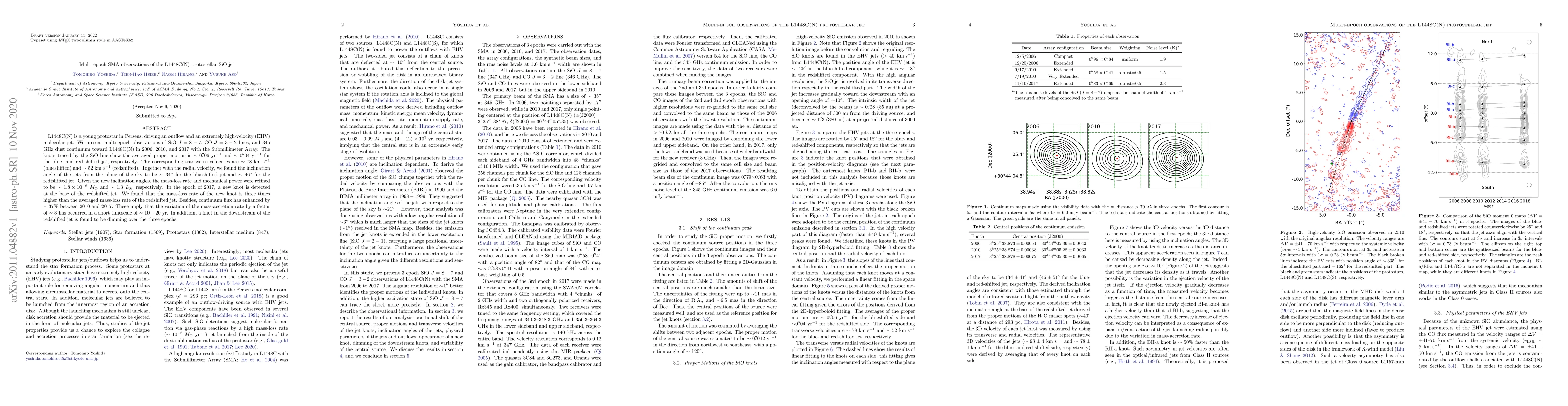 L1448C(N) is a young protostar in Perseus, driving an outflow and an extremely high-velocity (EHV) molecular jet. We present multi-epoch observations of SiO $J = 8-7$, CO $J = 3-2$ lines, and 345 GHz dust continuum toward L1448C(N) in 2006, 2010, and 2017 with the Submillimeter Array. The knots traced by the SiO line show the averaged proper motion is $\sim0''.06~{\rm yr^{-1}}$ and $\sim0''.04~{\rm yr^{-1}}$ for the blue- and red-shifted jet, respectively. The corresponding transverse velocities are $\sim78~{\rm km s^{-1}}$ (blueshifted) and $\sim52~{\rm km s^{-1}}$ (redshifted). Together with the radial velocity, we found the inclination angle of the jets from the plane of the sky to be $\sim34$\deg$ $ for the blueshifted jet and $\sim46$\deg$ $ for the redfshifted jet. Given the new inclination angles, the mass-loss rate and mechanical power were refined to be $\sim1.8\times 10^{-6}~M_\odot$ and $\sim1.3~L_\odot$, respectively. In the epoch of 2017, a new knot is detected at the base of the redshifted jet. We found that the mass-loss rate of the new knot is three times higher than the averaged mass-loss rate of the redshifted jet. Besides, continuum flux has enhanced by $\sim37\%$ between 2010 and 2017. These imply that the variation of the mass-accretion rate by a factor of $\sim3$ has occurred in a short timescale of $\sim10-20$ yr. In addition, a knot in the downstream of the redshifted jet is found to be dimming over the three epochs.