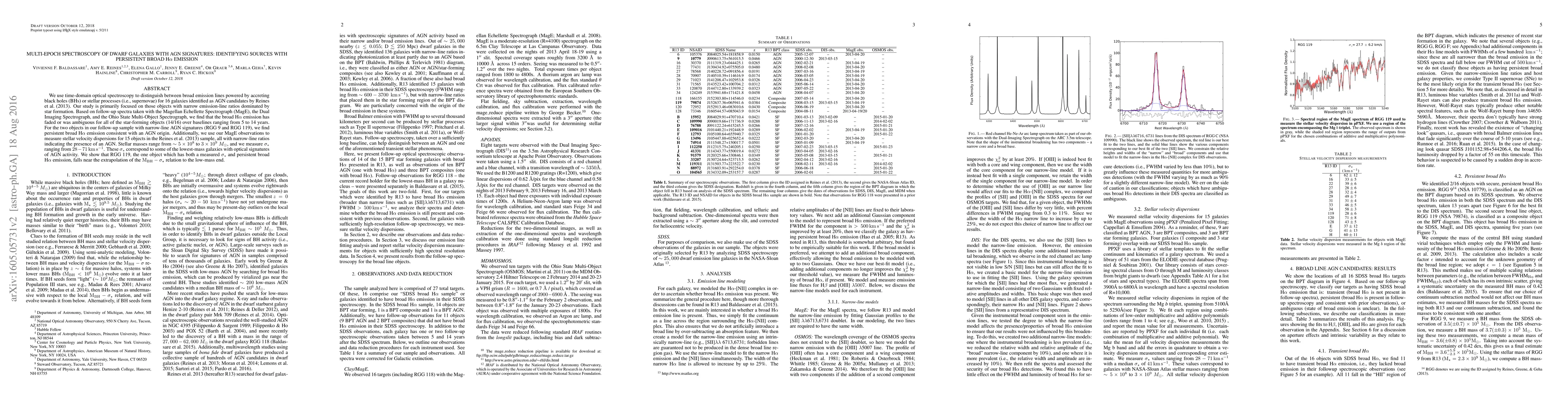 We use time-domain optical spectroscopy to distinguish between broad emission lines powered by accreting black holes (BHs) or stellar processes (i.e., supernovae) for 16 galaxies identified as AGN candidates by Reines \etal (2013). Our study is primarily focused on those objects with narrow emission-line ratios dominated by star formation. Based on follow-up spectra taken with the Magellan Echellette Spectrograph (MagE), the Dual Imaging Spectrograph, and the Ohio State Multi-Object Spectrograph, we find that the broad H$\alpha$ emission has faded or was ambiguous for all of the star-forming objects (14/16) over baselines ranging from 5 to 14 years. For the two objects in our follow-up sample with narrow-line AGN signatures (RGG 9 and RGG 119), we find persistent broad H$\alpha$ emission consistent with an AGN origin. Additionally, we use our MagE observations to measure stellar velocity dispersions for 15 objects in the Reines et al. (2013) sample, all with narrow-line ratios indicating the presence of an AGN. Stellar masses range from $\sim5\times10^{8}$ to $3\times10^{9}$~\msun, and we measure $\sigma_{\ast}$ ranging from $28-71~{\rm km~s^{-1}}$. These $\sigma_{\ast}$ correspond to some of the lowest-mass galaxies with optical signatures of AGN activity. We show that RGG 119, the one object which has both a measured $\sigma_{\ast}$ and persistent broad H$\alpha$ emission, falls near the extrapolation of the $\rm M_{BH}-\sigma_{\star}$ relation to the low-mass end.