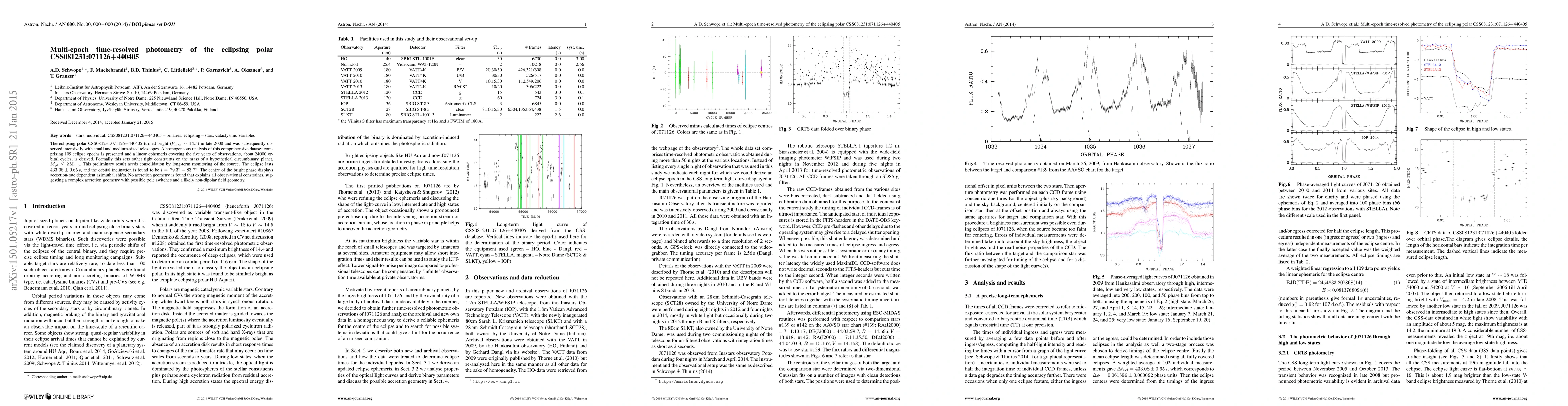 The eclipsing polar CSS081231 turned bright (V_max ~ 14.5) in late 2008 and was subsequently observed intensively with small and medium-sized telescopes. A homogeneous analysis of this comprehensive dataset comprising 109 eclipse epochs is presented and a linear ephemeris covering the five years of observations, about 24000 orbital cycles, is derived. Formally this sets rather tight constraints on the mass of a hypothetical circumbinary planet, M_pl <= 2 M_Jup. This preliminary result needs consolidation by long-term monitoring of the source. The eclipse lasts 433.08 +- 0.65 s, and the orbital inclination is found to be i=79.3 - 83.7 degrees. The centre of the bright phase displays accretion-rate dependent azimuthal shifts. No accretion geometry is found that explains all observational constraints, suggesting a complex accretion geometry with possible pole switches and a likely non-dipolar field geometry.