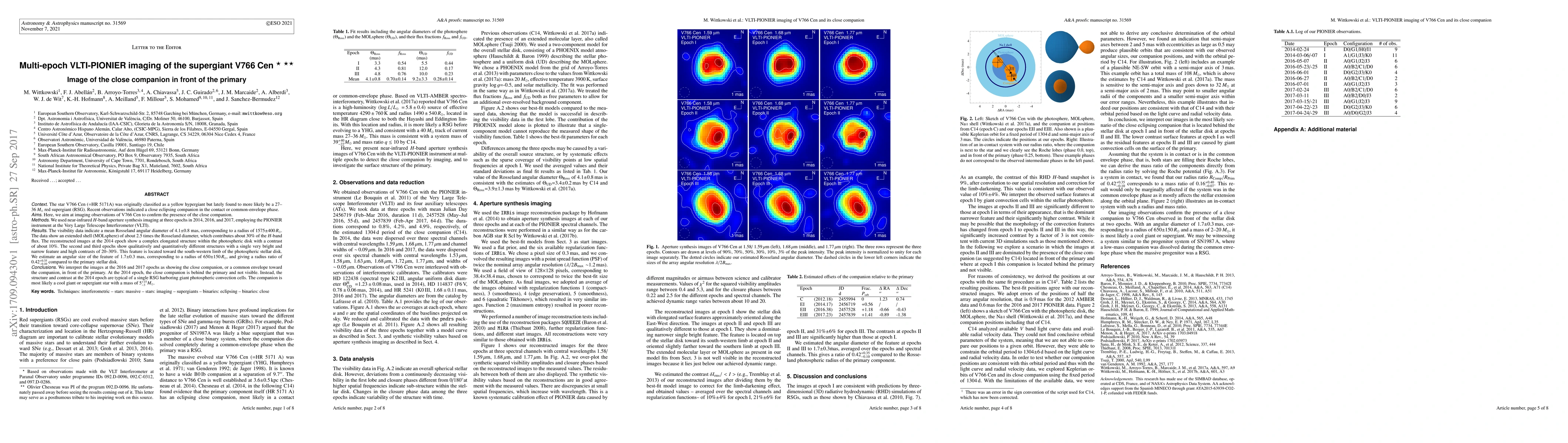 Researchers used near-infrared imaging to observe a red supergiant star V766 Cen with its close companion, finding the companion's angular size and estimating its mass.