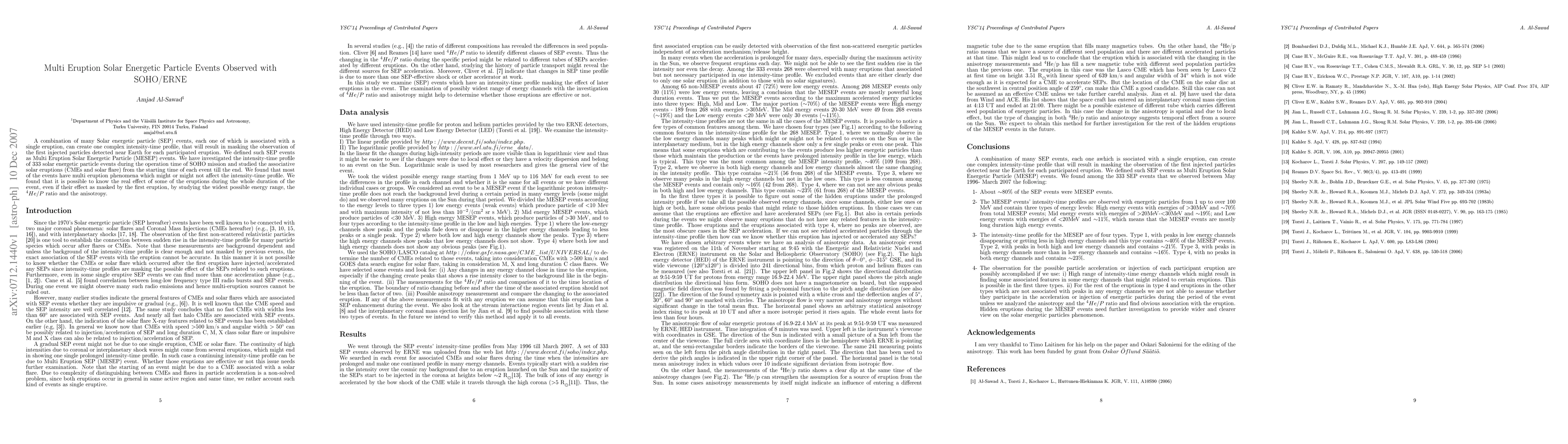 This study investigates the complex intensity-time profiles of 333 solar energetic particle events observed during the SOHO mission, identifying them as Multi Eruption Solar Energetic Particle (MESEP) events. The research reveals that most events exhibit multi-eruption phenomena, and by analyzing the $^4He/P$ ratio and anisotropy over a wide energy range, it is possible to discern the true impact of subsequent eruptions even when initially masked by the first eruption.