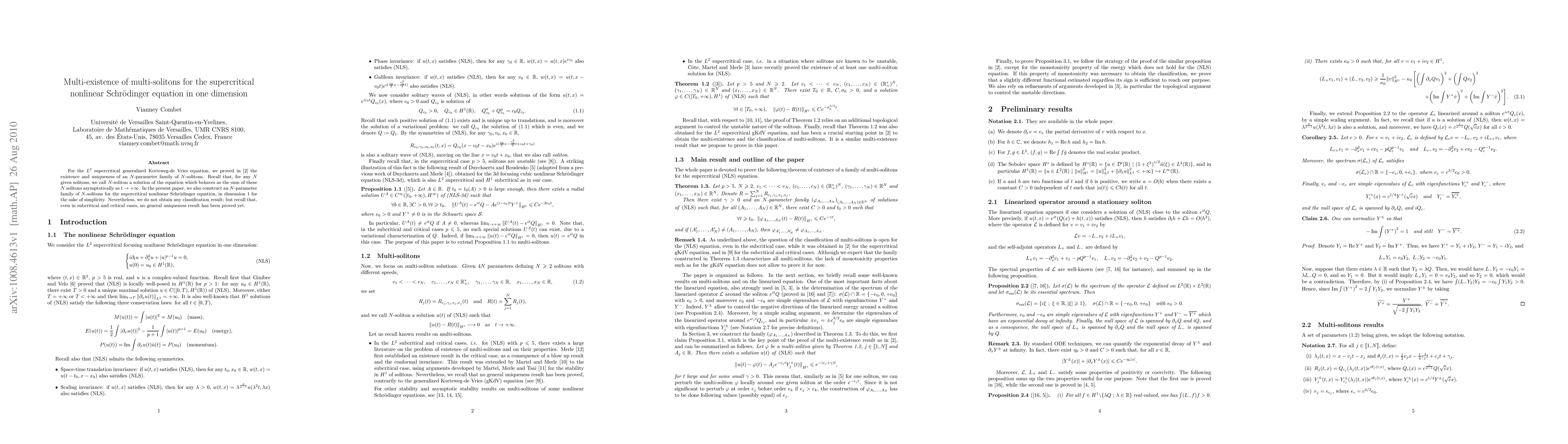 For the L2 supercritical generalized Korteweg-de Vries equation, we proved in a previous article the existence and uniqueness of an N-parameter family of N-solitons. Recall that, for any N given solitons, we call N-soliton a solution of the equation which behaves as the sum of these N solitons asymptotically as time goes to infinity. In the present paper, we also construct an N-parameter family of N-solitons for the supercritical nonlinear Schr\"odinger equation, in dimension 1 for the sake of simplicity. Nevertheless, we do not obtain any classification result; but recall that, even in subcritical and critical cases, no general uniqueness result has been proved yet.