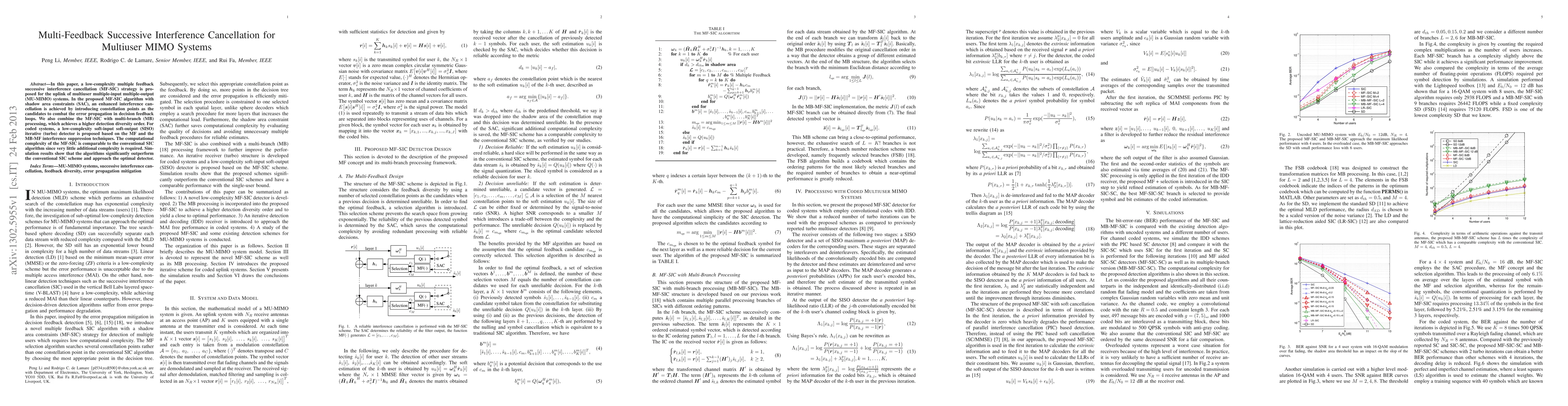 This paper proposes a low-complexity multiple feedback successive interference cancellation (MF-SIC) strategy for multiuser MIMO systems, enhancing interference cancellation with constellation points and combining it with multi-branch processing for improved detection diversity. The computational complexity remains comparable to conventional SIC, and simulation results show significant performance gains over the conventional SIC scheme.