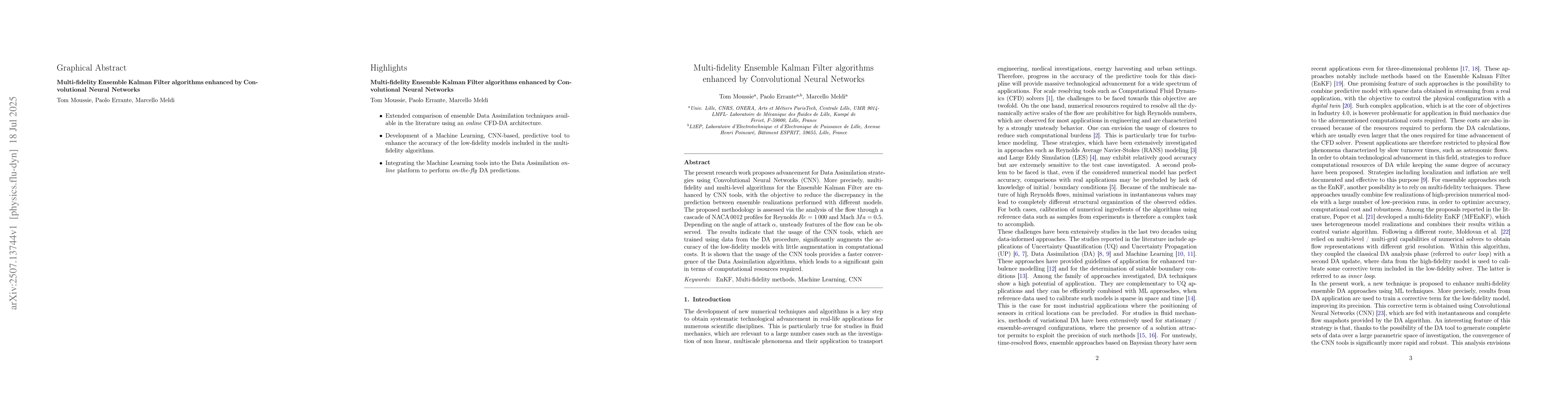 The present research work proposes advancement for Data Assimilation strategies using Convolutional Neural Networks (CNN). More precisely, multi-fidelity and multi-level algorithms for the Ensemble Kalman Filter are enhanced by CNN tools, with the objective to reduce the discrepancy in the prediction between ensemble realizations performed with different models. The proposed methodology is assessed via the analysis of the flow through a cascade of NACA 0012 profiles for Reynolds $Re=1\,000$ and Mach $Ma=0.5$. Depending on the angle of attack $\alpha$, unsteady features of the flow can be observed. The results indicate that the usage of the CNN tools, which are trained using data from the DA procedure, significantly augments the accuracy of the low-fidelity models with little augmentation in computational costs. It is shown that the usage of the CNN tools provides a faster convergence of the Data Assimilation algorithms, which leads to a significant gain in terms of computational resources required.