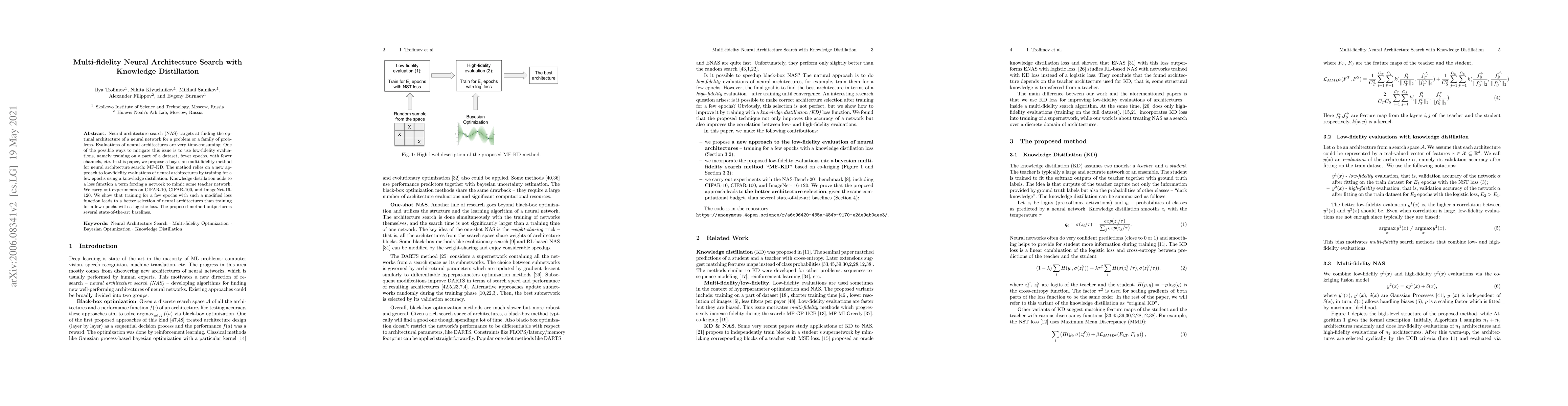 The paper proposes MF-KD, a Bayesian multi-fidelity method for Neural Architecture Search (NAS) using knowledge distillation for low-fidelity evaluations. It trains architectures for a few epochs with a modified loss function that includes knowledge distillation, and employs a co-kriging fusion regression model for budget allocation.