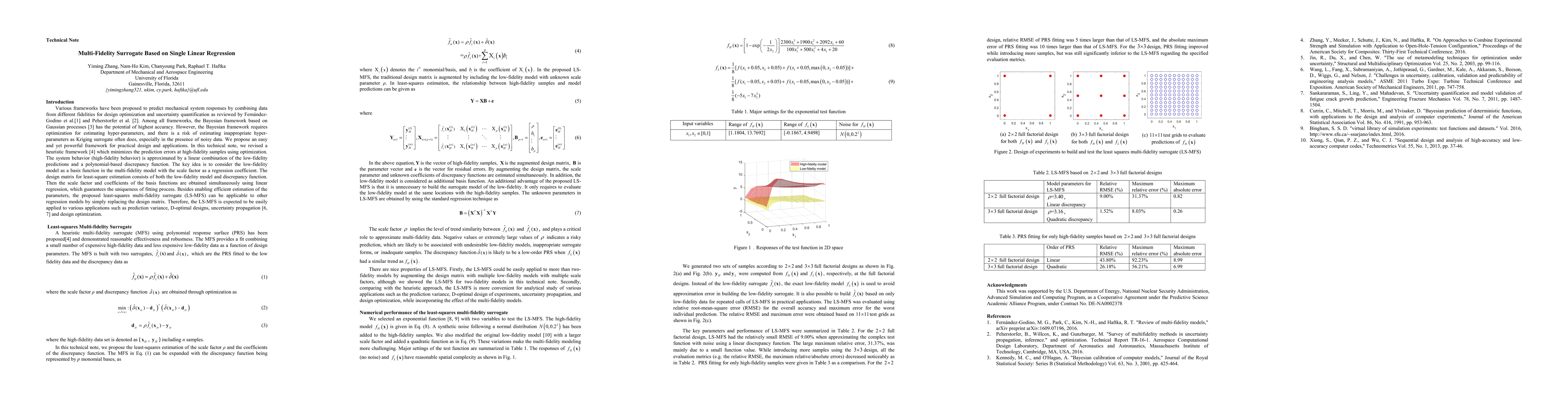 This paper proposes a least-squares multi-fidelity surrogate (LS-MFS) based on single linear regression to predict high-fidelity mechanical system responses by combining low-fidelity data. The method minimizes prediction errors at high-fidelity samples using linear regression, offering a practical and efficient alternative to Bayesian frameworks.